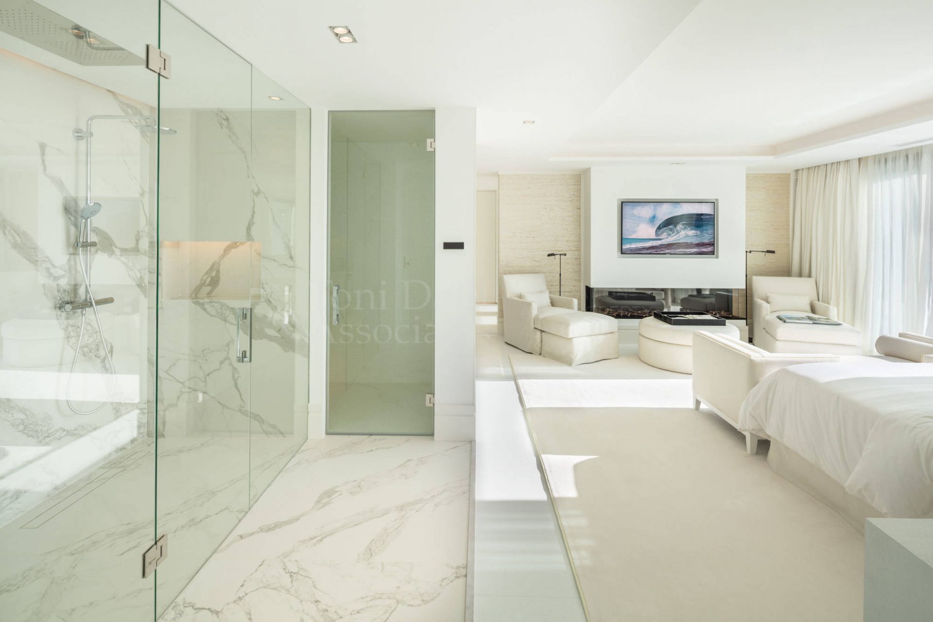 This outstanding mansion is located in the heart of Nueva Andalucía’s Golf Valley, one of Marbella’s most prestigious residential areas. Positioned on an elevated plot, the property enjoys panoramic views of the Mediterranean Sea and the lush fairways that surround it. Recently refurbished to the highest standards, every detail of this home has been carefully designed, with bespoke decoration and furnishings created exclusively for the property.