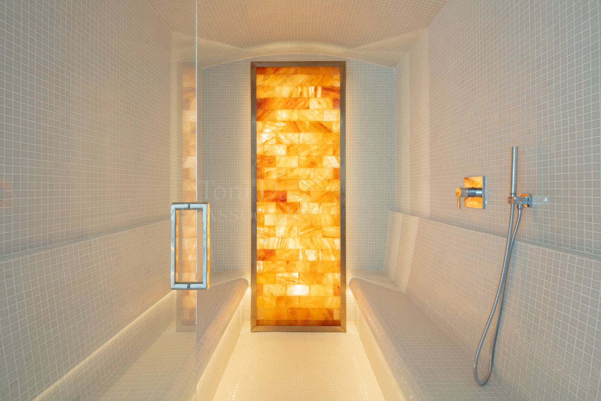 Arriving at the estate, a private driveway leads to a covered garage area equipped with Tesla and electric car charging stations, combining modern convenience with luxury living. The entrance of the home is impressive from the first moment, with the spectacular sea and golf views visible as soon as you step inside.