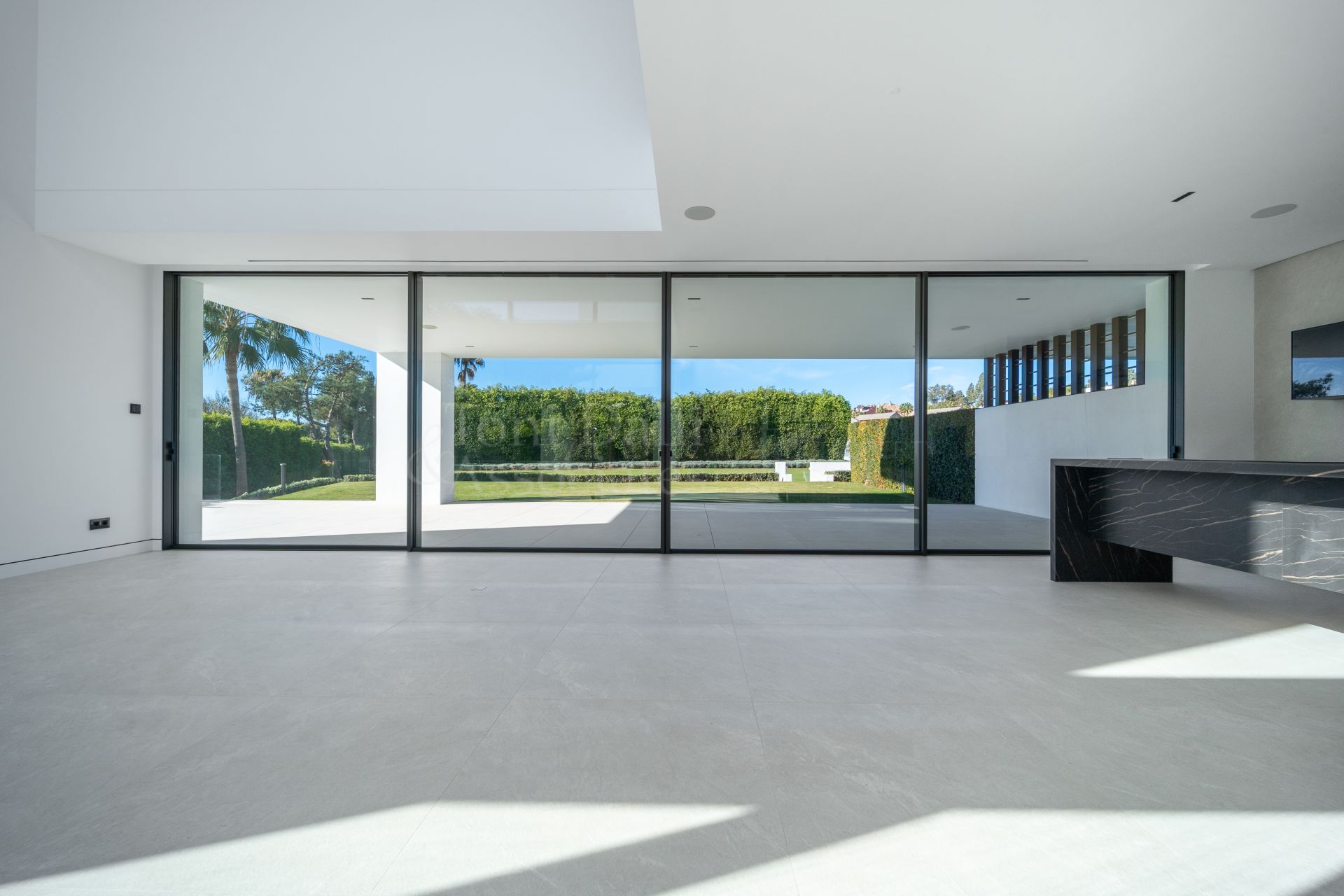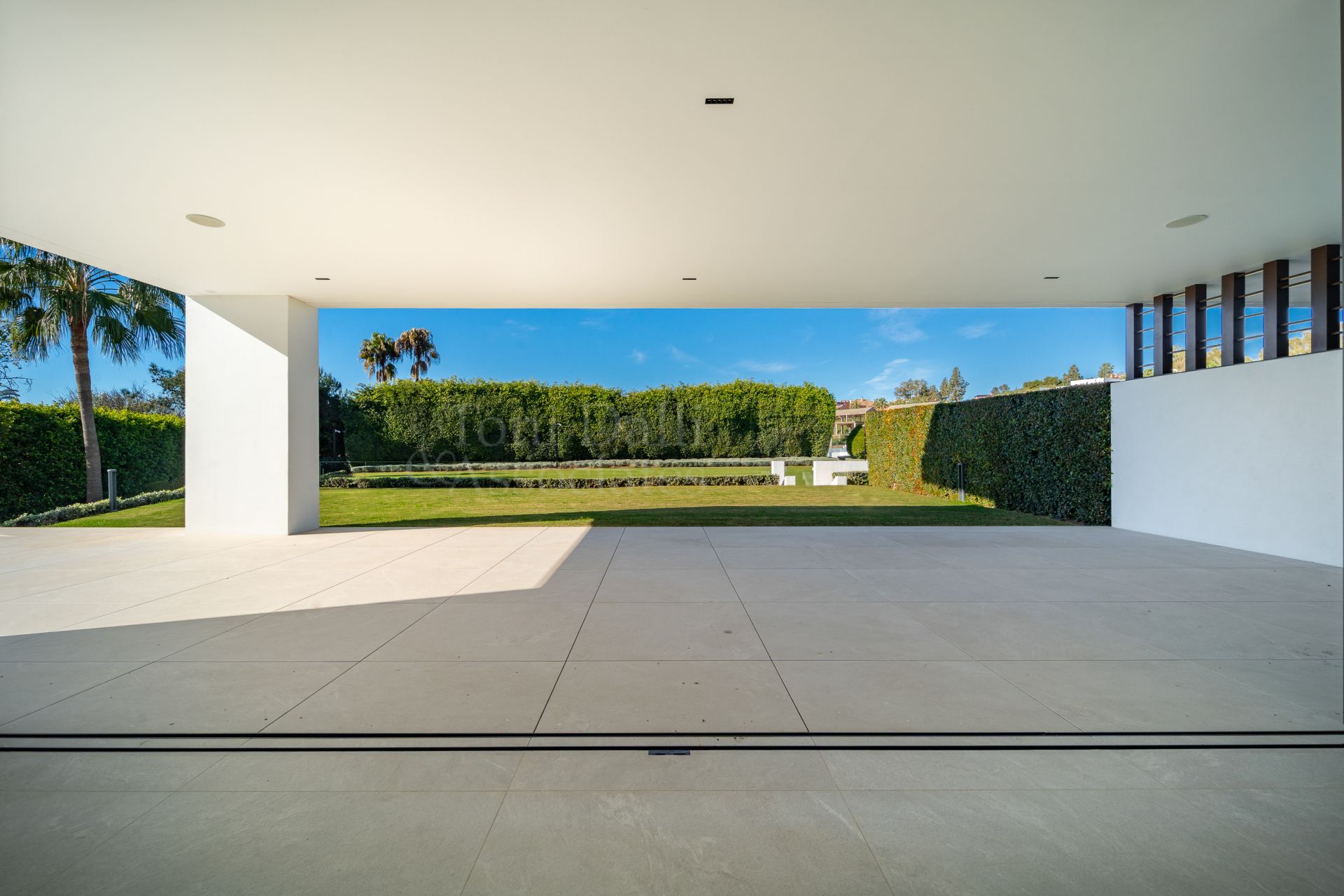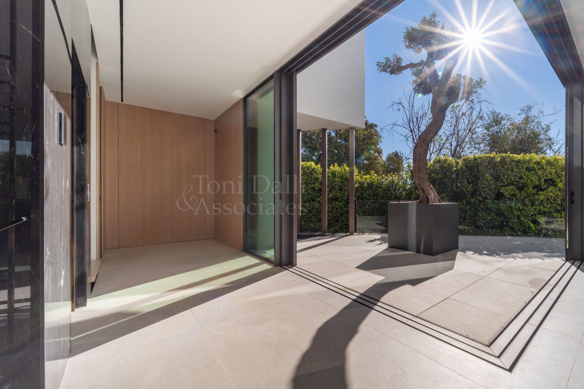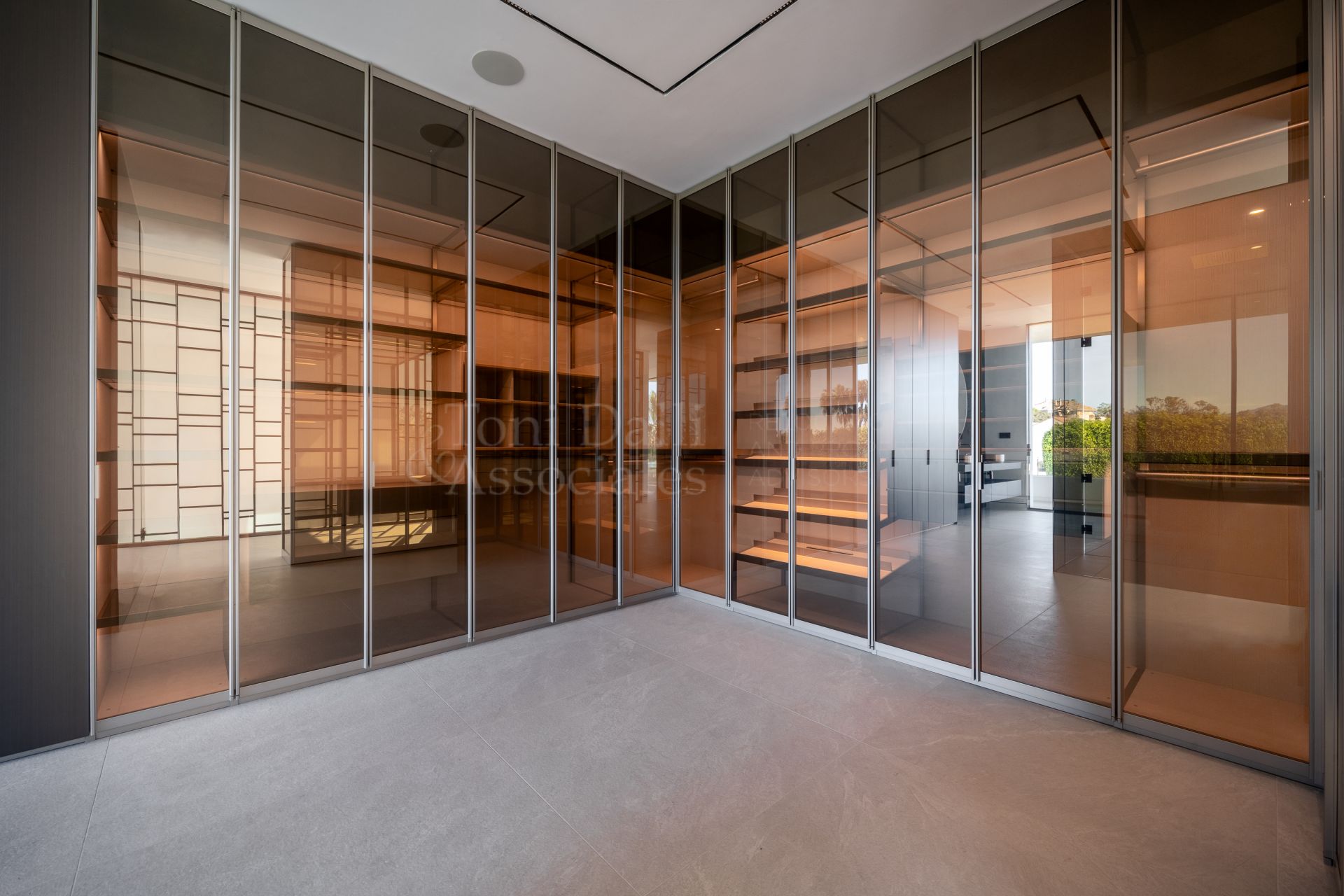The villa is equipped with a full music installation, creating a seamless audio environment across the home. Large sliding doors open onto generous outdoor spaces created for dining, lounging, and enjoying Marbella’s exceptional climate throughout the year. This floor also includes a guest toilet.