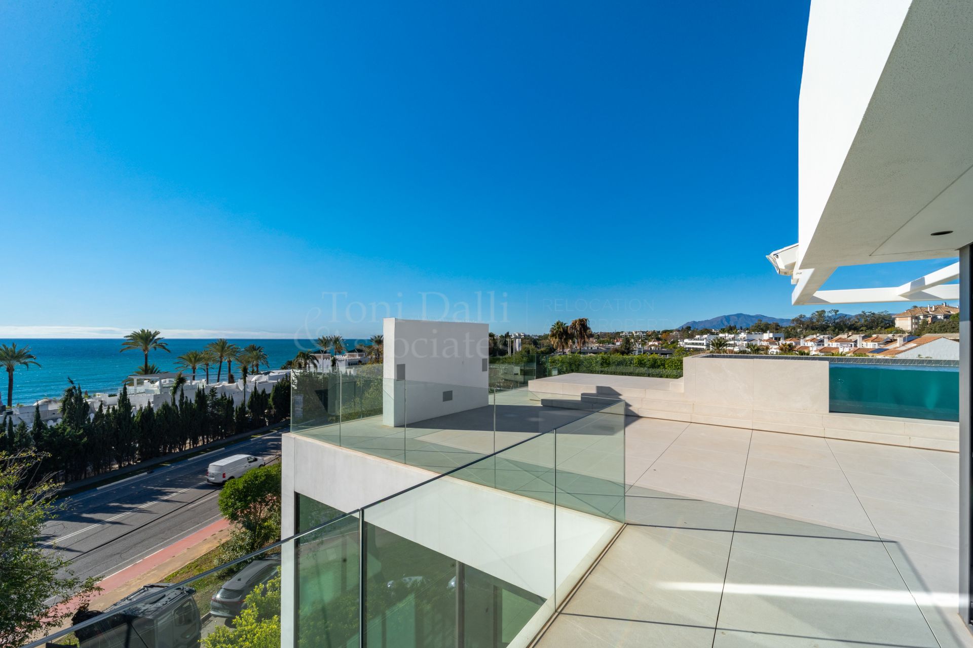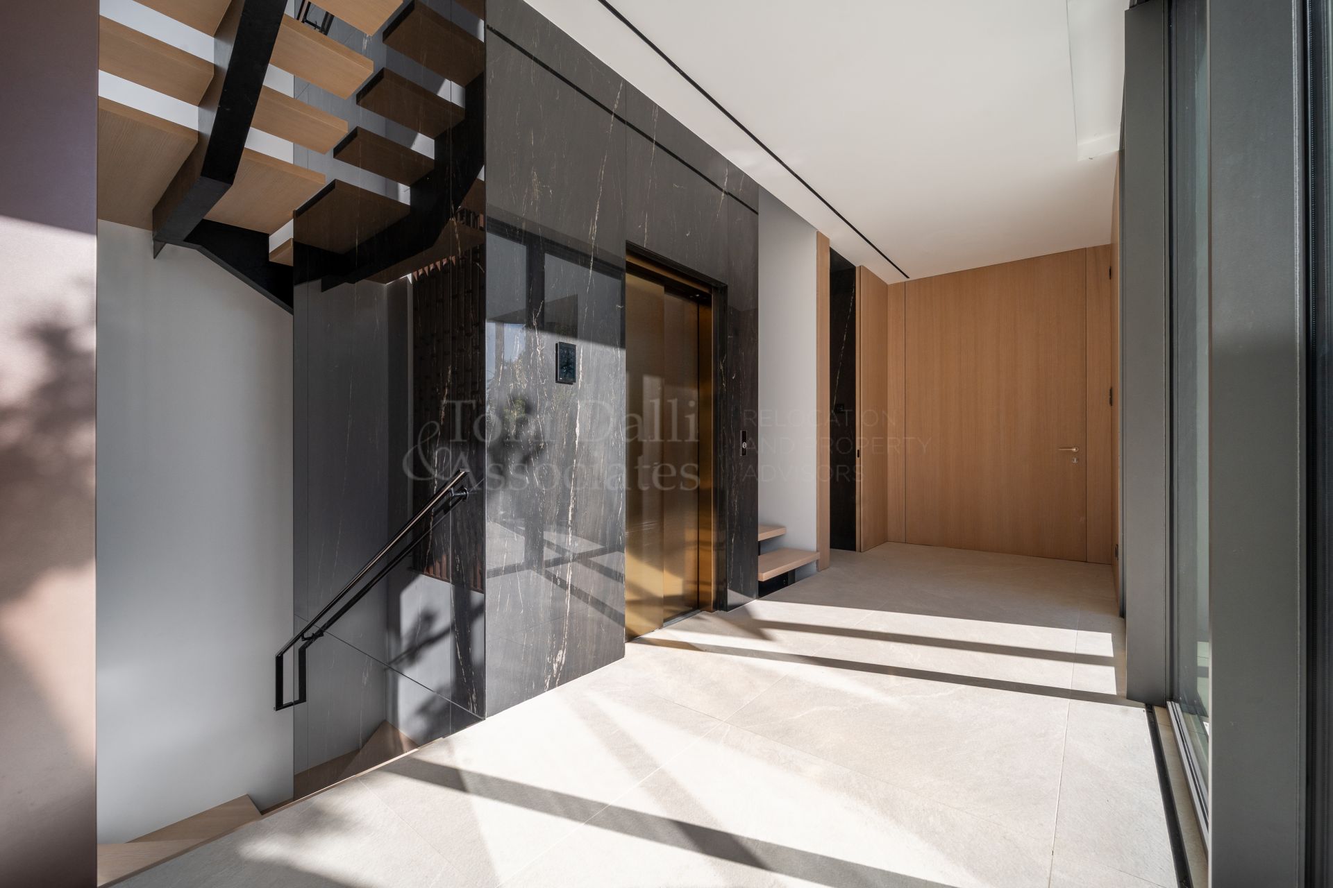 This exceptional semi-detached villa is located within the exclusive Vilas 12 development on Marbella’s Golden Mile, one of the most prestigious and sought-after residential areas on the Costa del Sol. Designed across four levels with contemporary architecture and premium materials, the property offers 714 m² built, including 448 m² of interior living space and 265 m² of terraces, all set on a 361 m² plot. It combines modern elegance, practical comfort, and a privileged lifestyle setting, making it an ideal choice as a primary residence, a luxurious second home, or a high-yield rental investment.