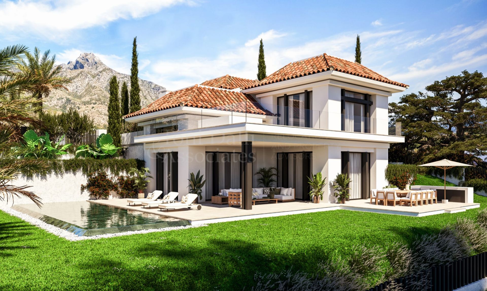 Luxurious Mediterranean-style villa currently under construction, set in a prime location just a short distance from the iconic Puente Romano and the pristine beaches of Marbella. This south-facing villa is designed to embody the perfect blend of modern luxury and timeless Mediterranean charm, offering a lifestyle of unparalleled comfort and sophistication.