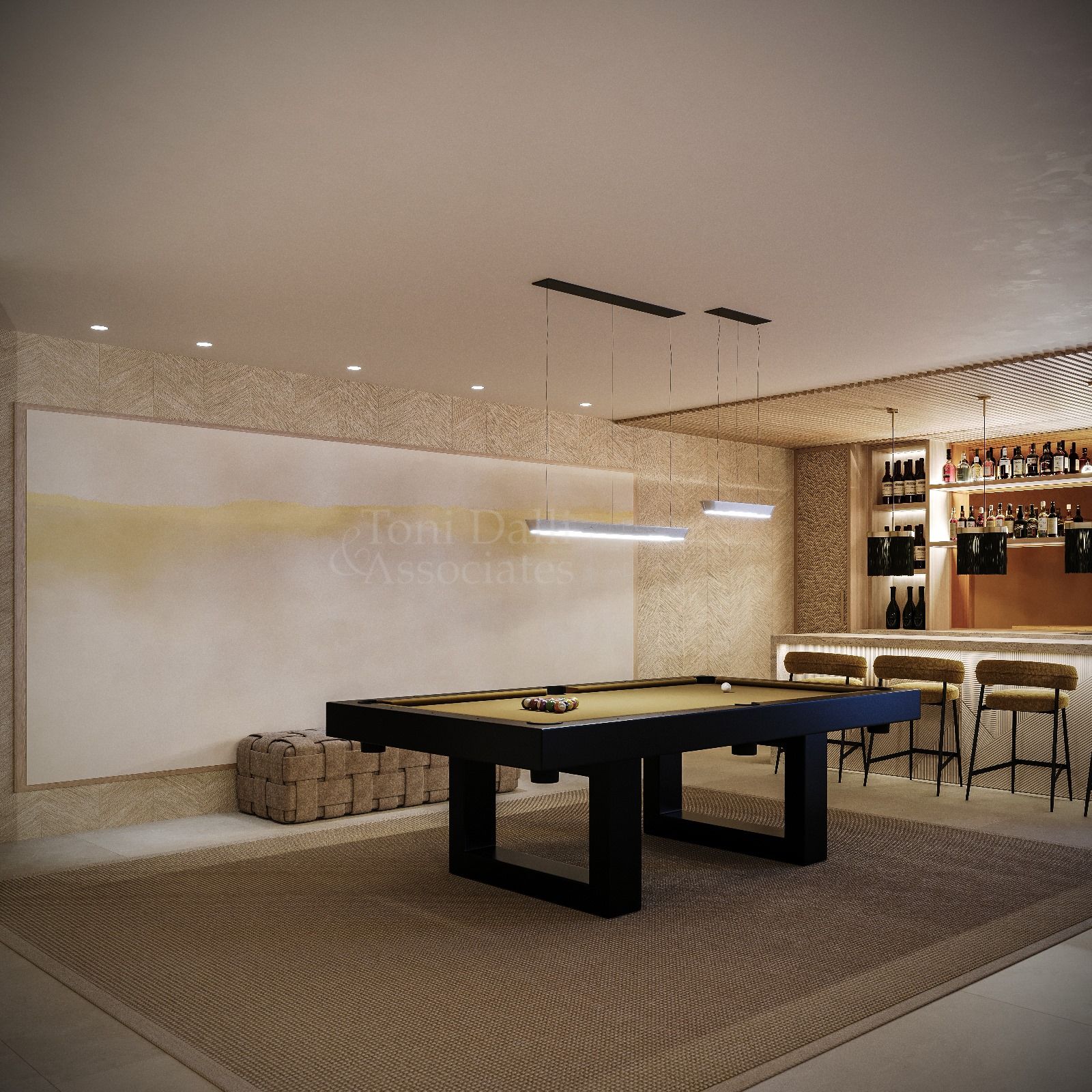 The basement level is a hub of entertainment and wellness, offering a variety of leisure options. A spacious games room, complemented by a wine cellar and bar, is perfect for hosting friends and family. Health and wellness enthusiasts will appreciate the fully equipped gym and the indulgent sauna, providing a spa-like experience at home. This level also includes a full bathroom, an additional bedroom with a separate bathroom, a technical room, and a laundry room, ensuring that all your needs are met with convenience and style.