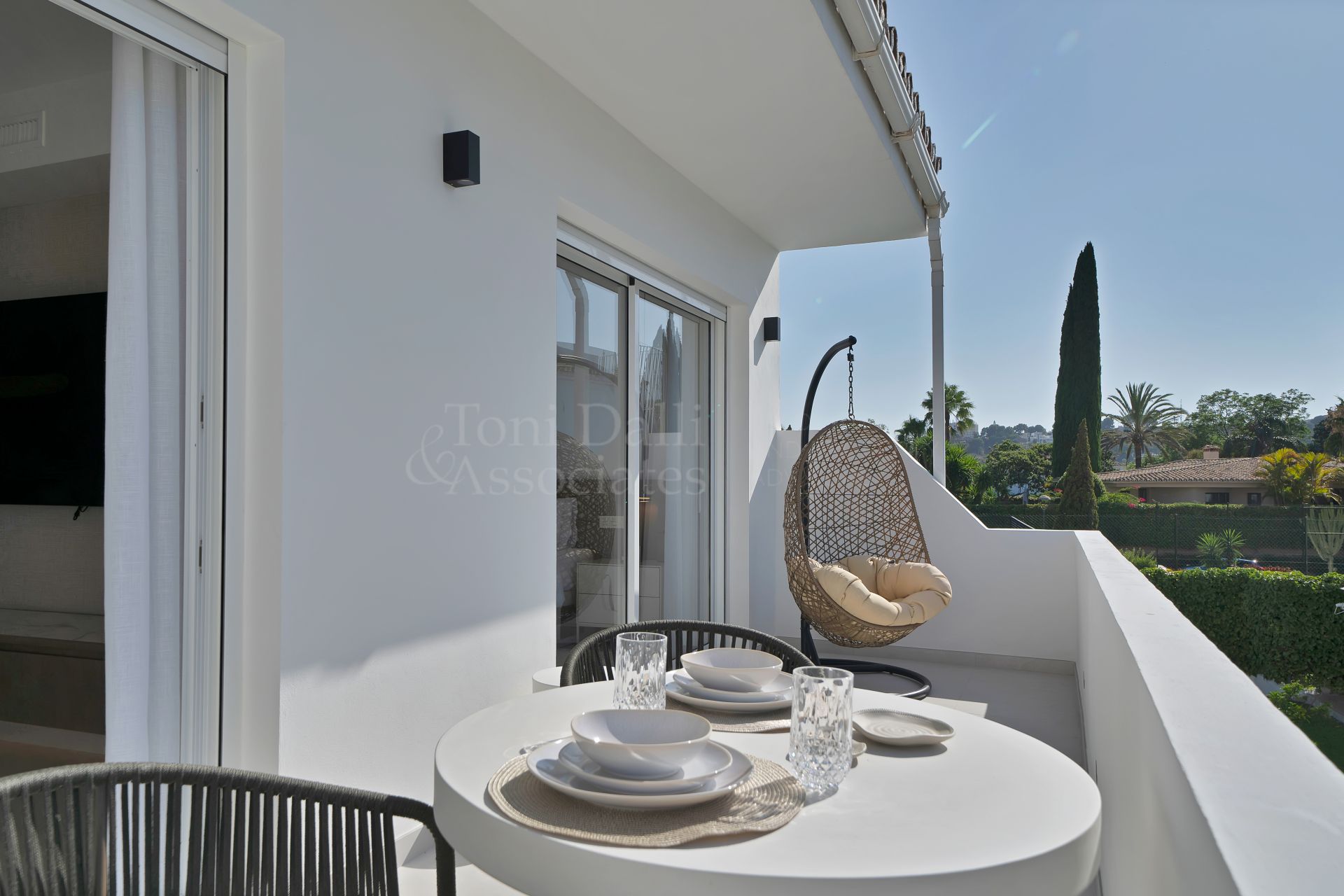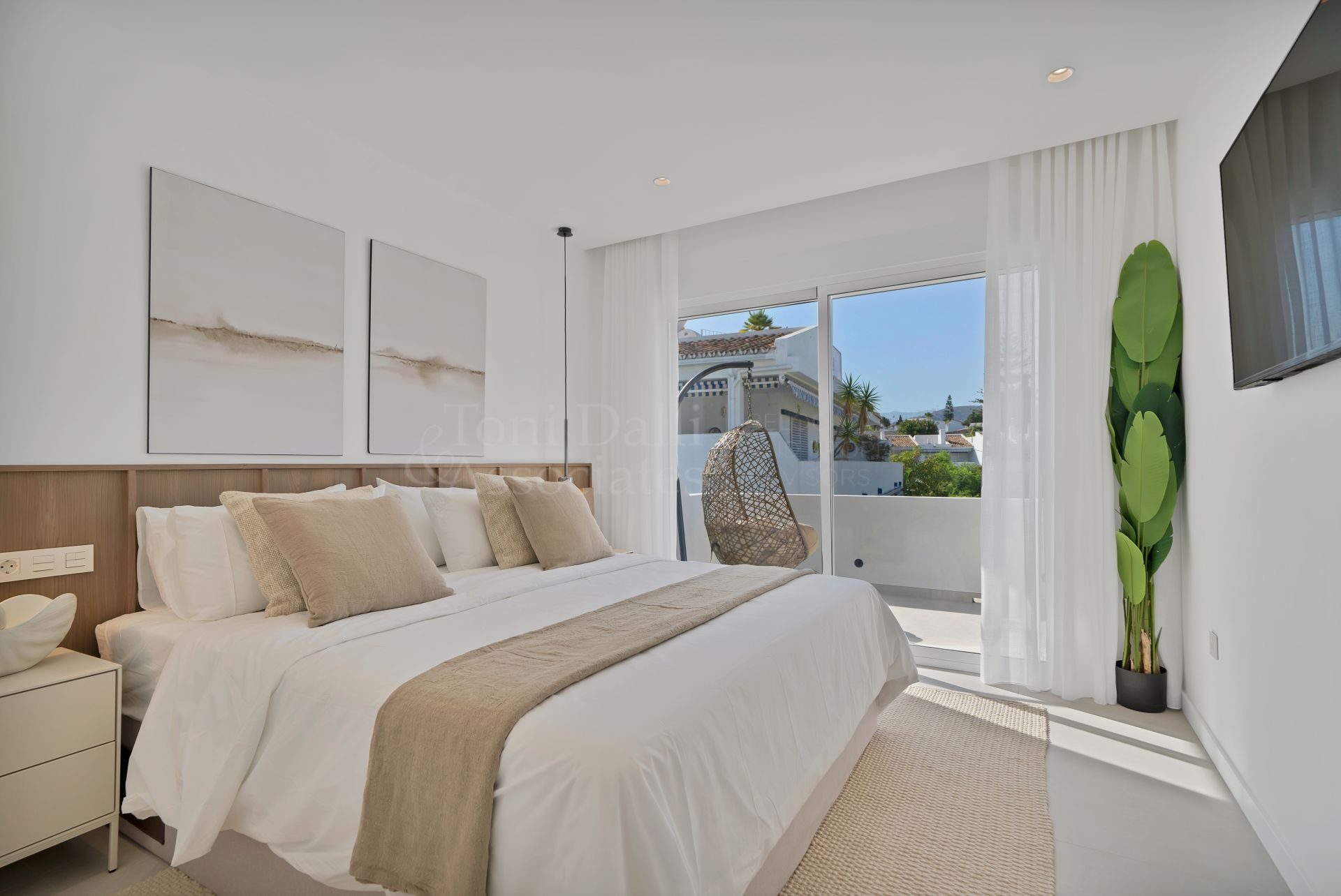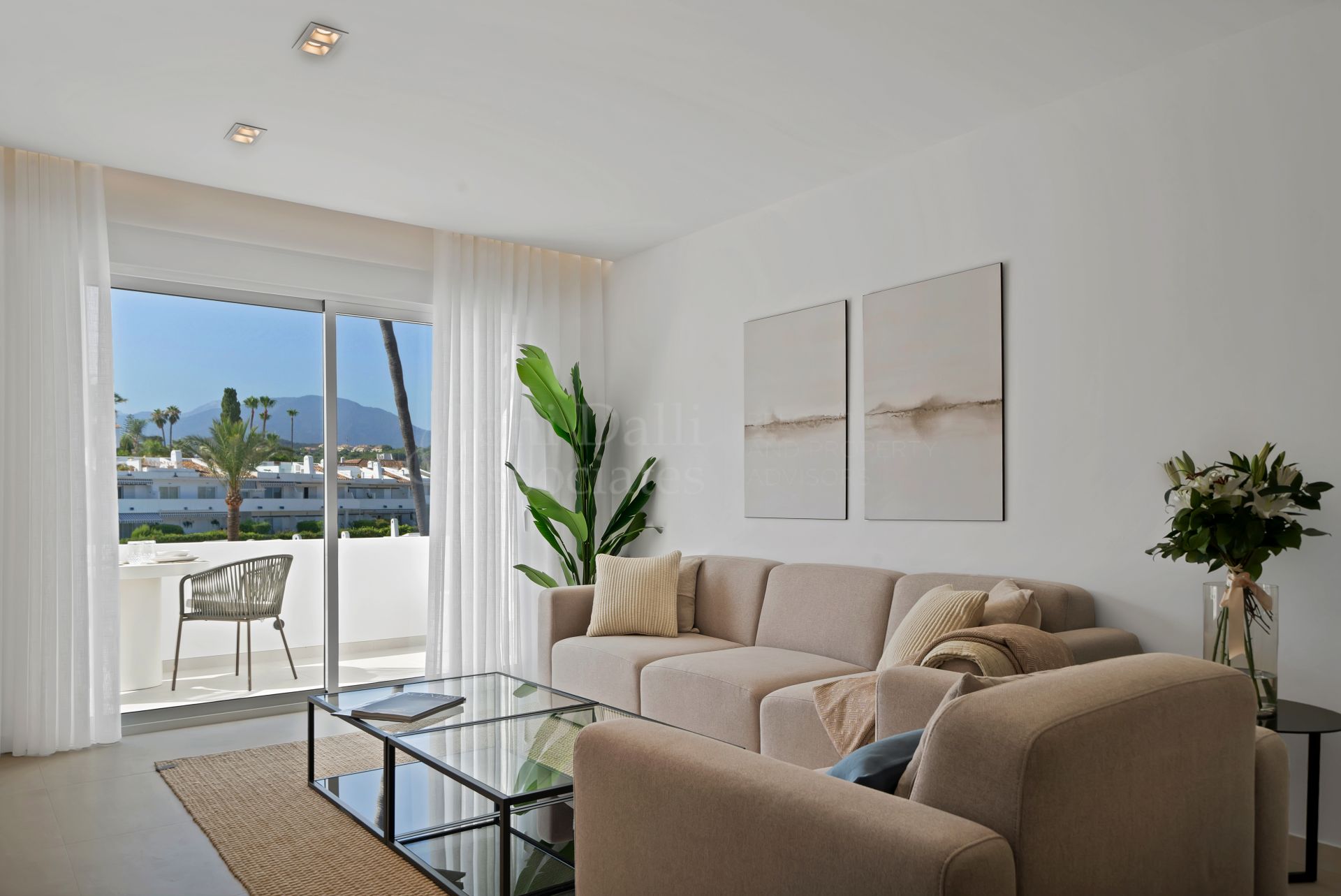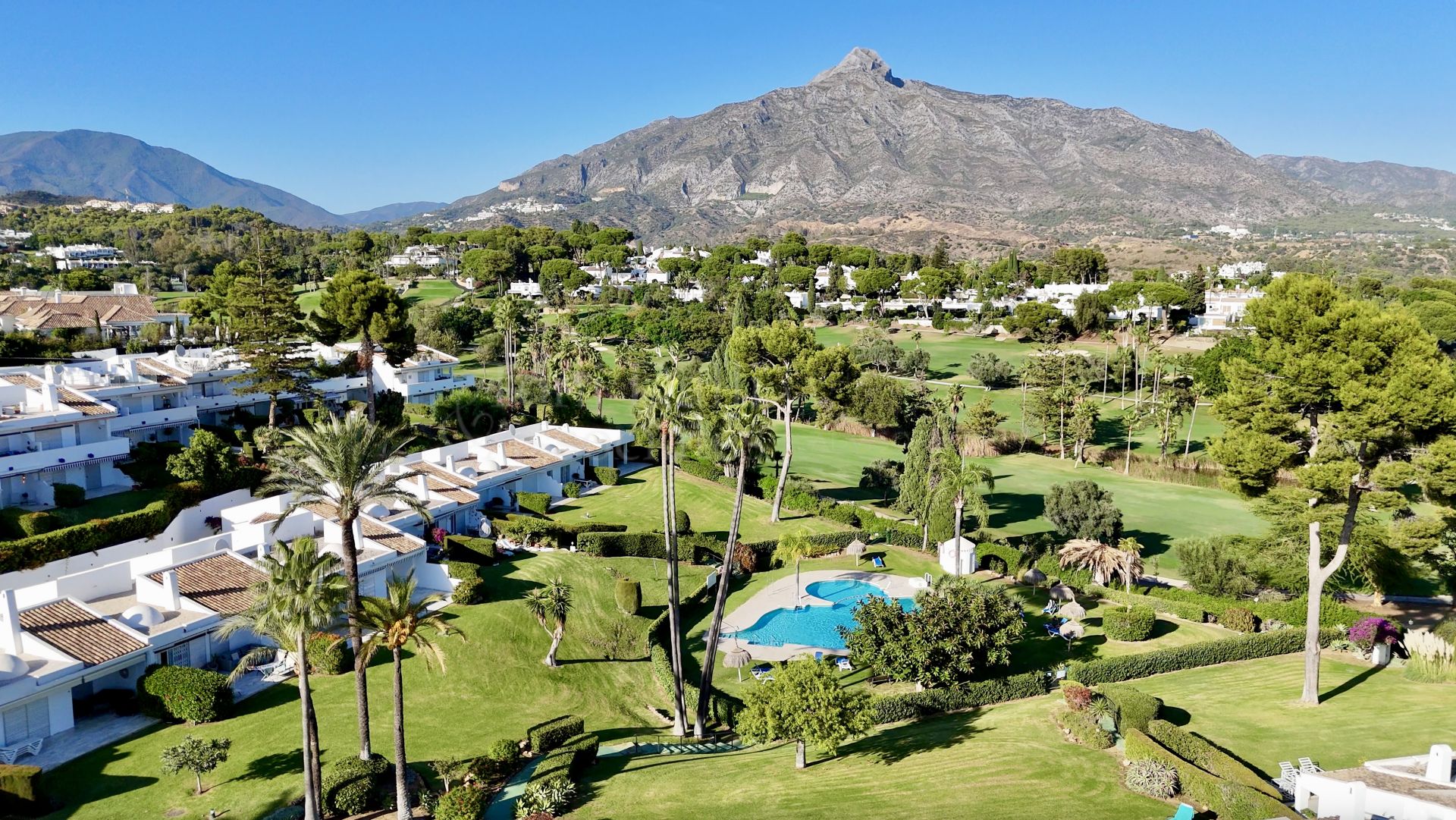 Located in the sought-after area of Aloha, within the prestigious Nueva Andalucía Golf Valley, this beautifully renovated duplex penthouse offers a unique blend of style, comfort, and exceptional views. Set within a secure, gated community, this east-facing residence enjoys stunning vistas over manicured golf courses and the surrounding mountains — a peaceful and picturesque backdrop to everyday living.