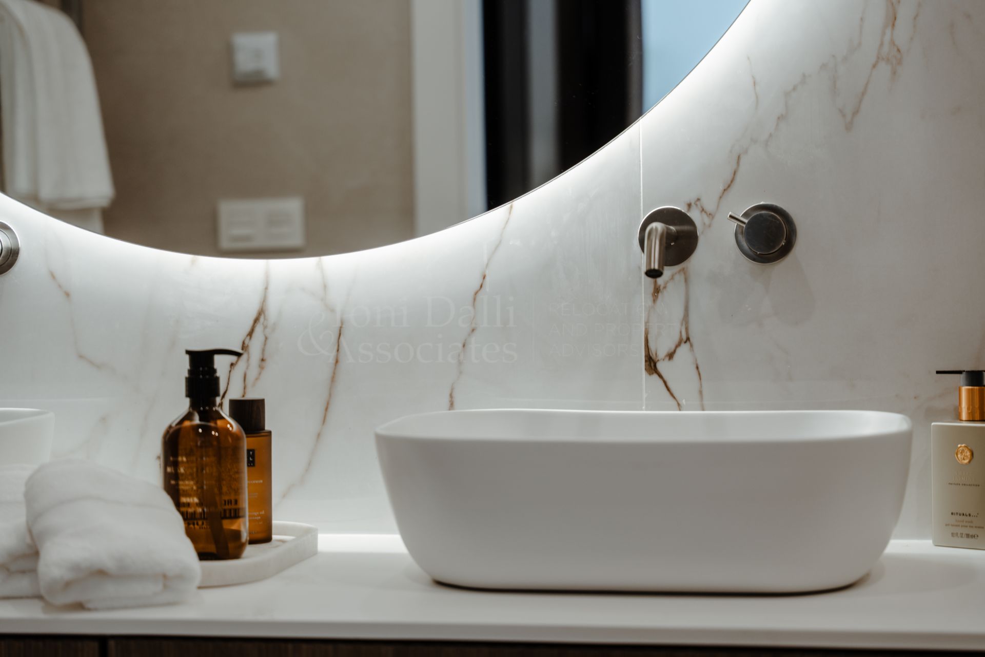 The property offers two generously sized bedrooms, each designed with comfort and privacy in mind. The master suite includes a luxurious en-suite bathroom and a walk-in wardrobe, creating a private retreat for relaxation. The second bedroom is served by a separate, fully renovated bathroom, making it ideal for guests or family members.