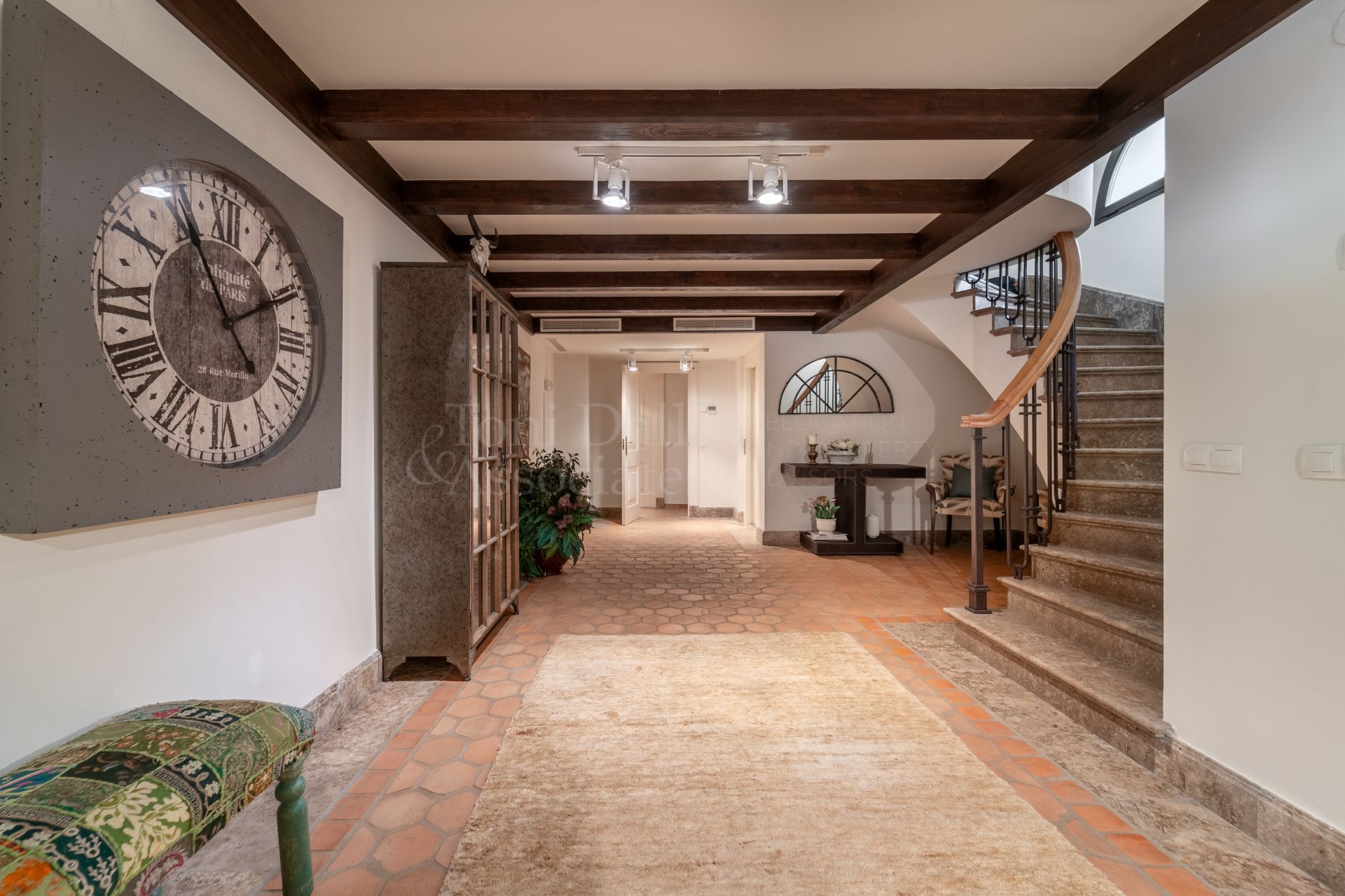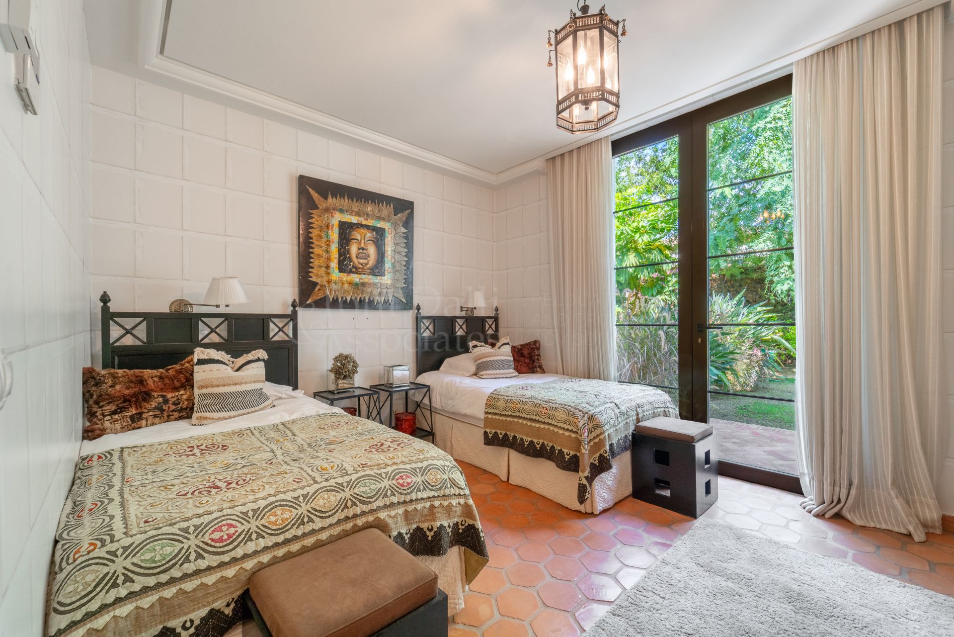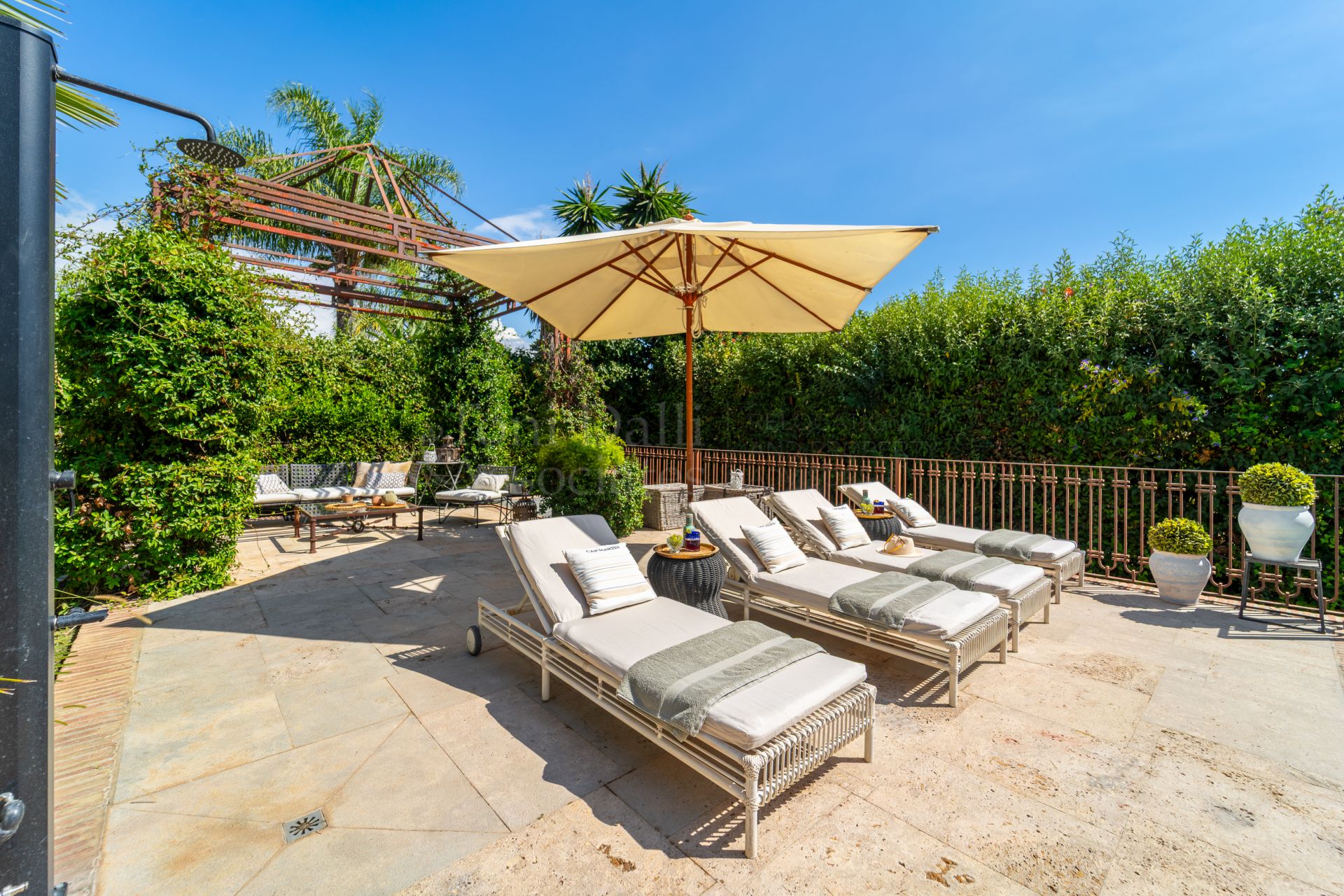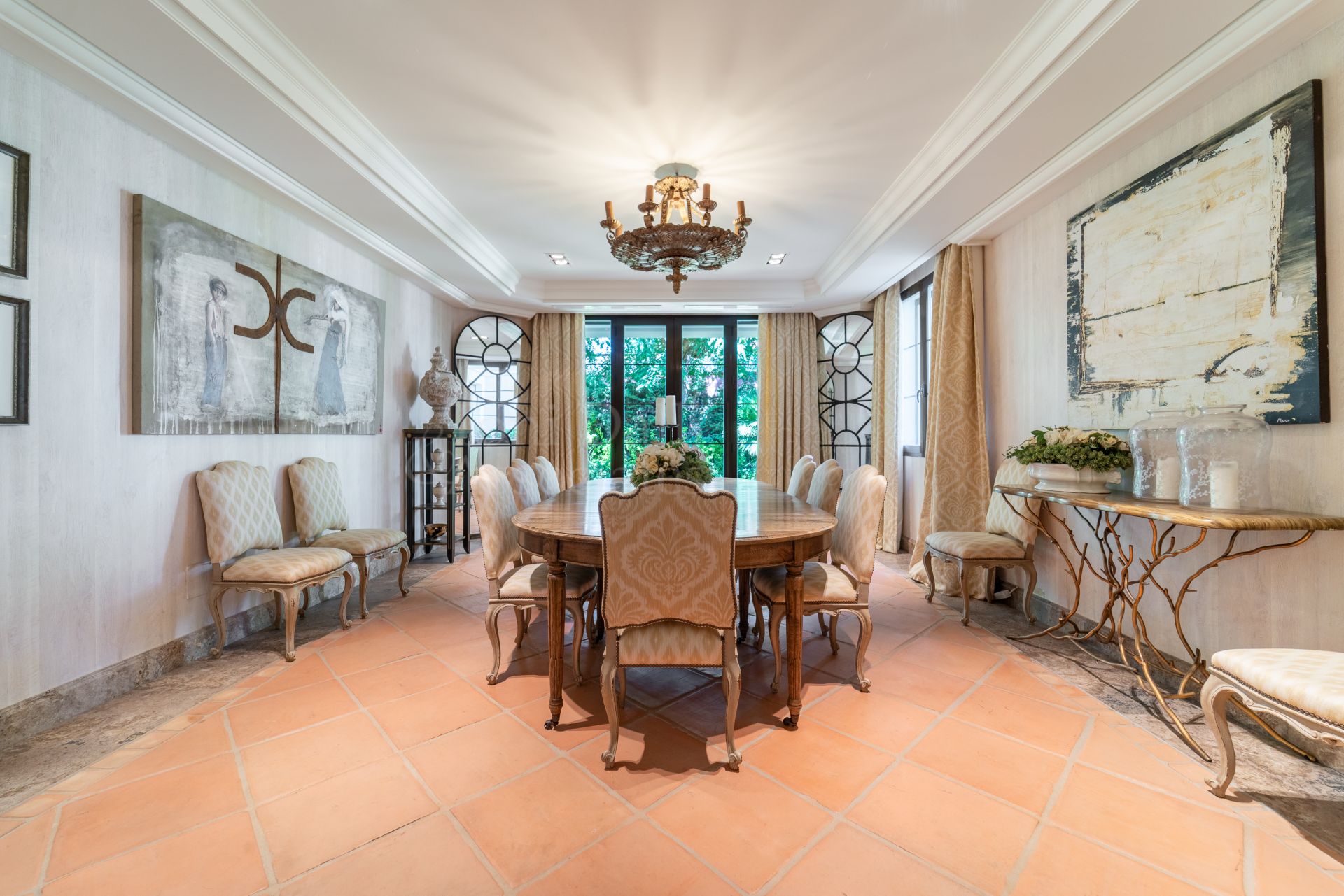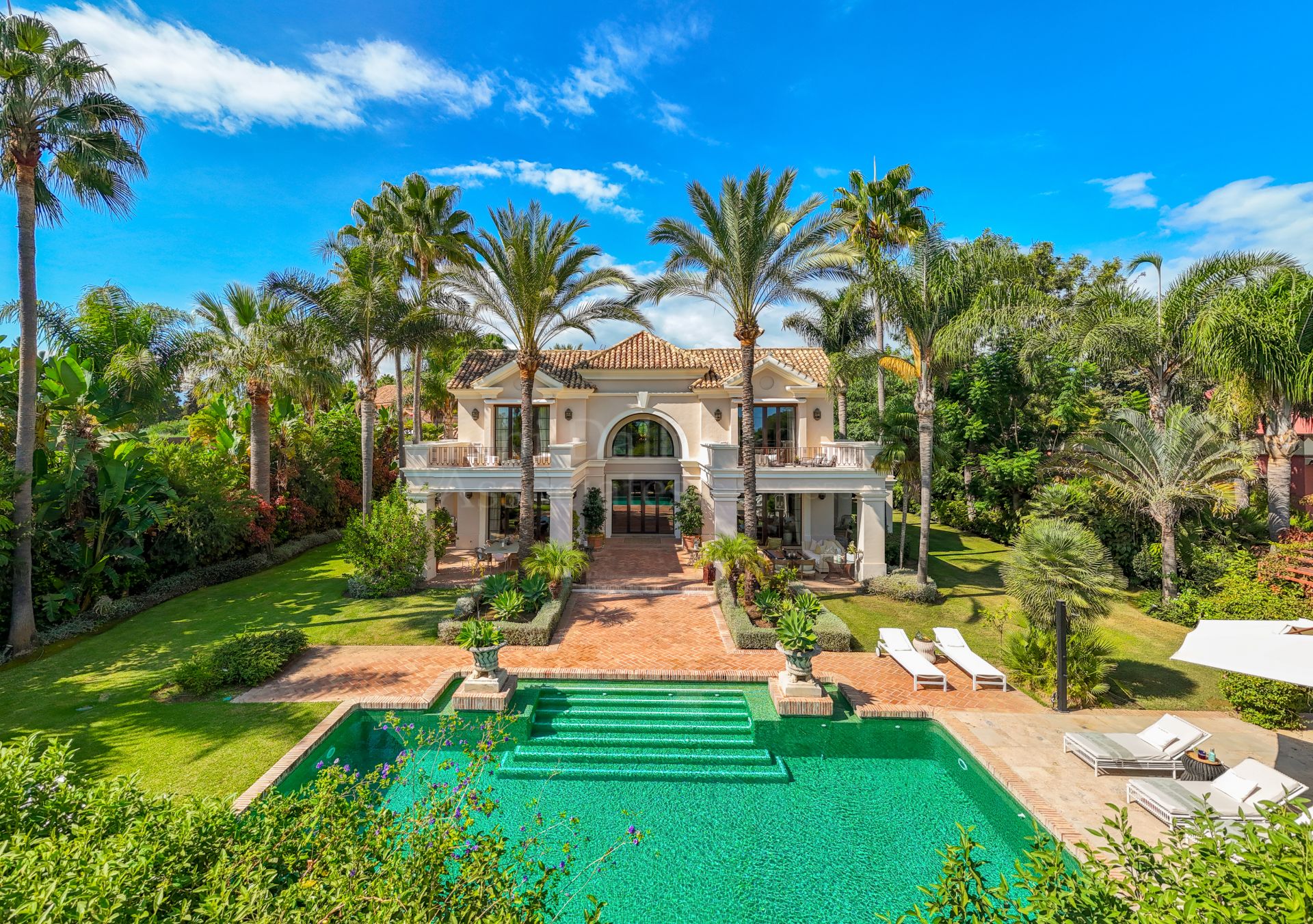 Located in the tranquil and exclusive area of Guadalmina Baja, just steps from the beach and accessed via a one-way street that ensures privacy and discretion, stands this imposing classic-style villa with timeless elegance and unique charm.