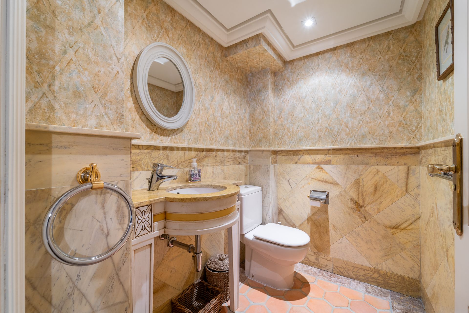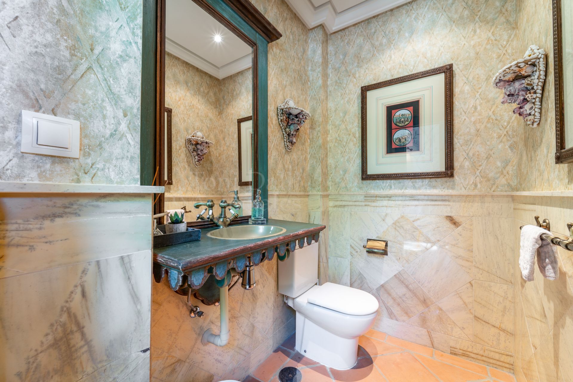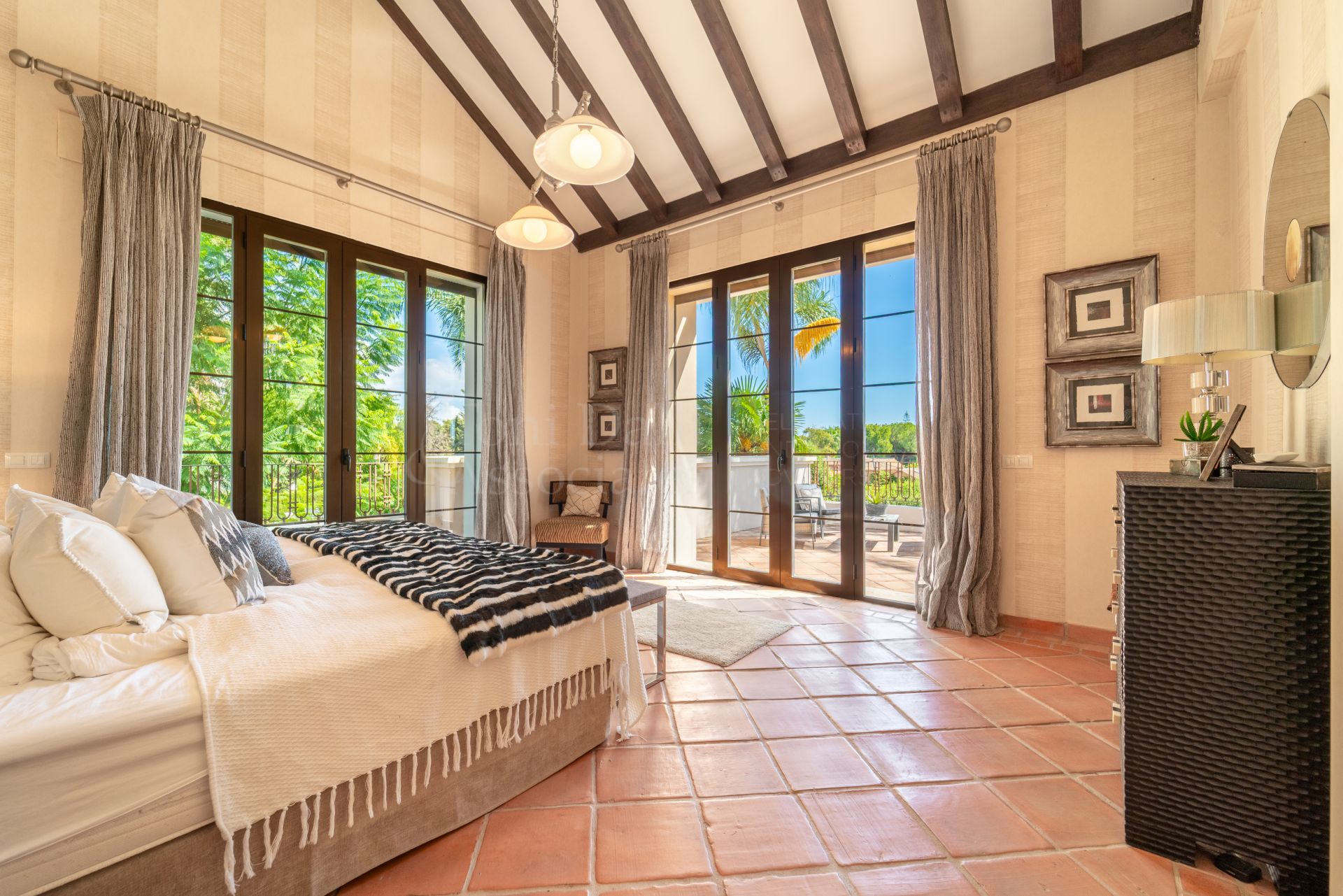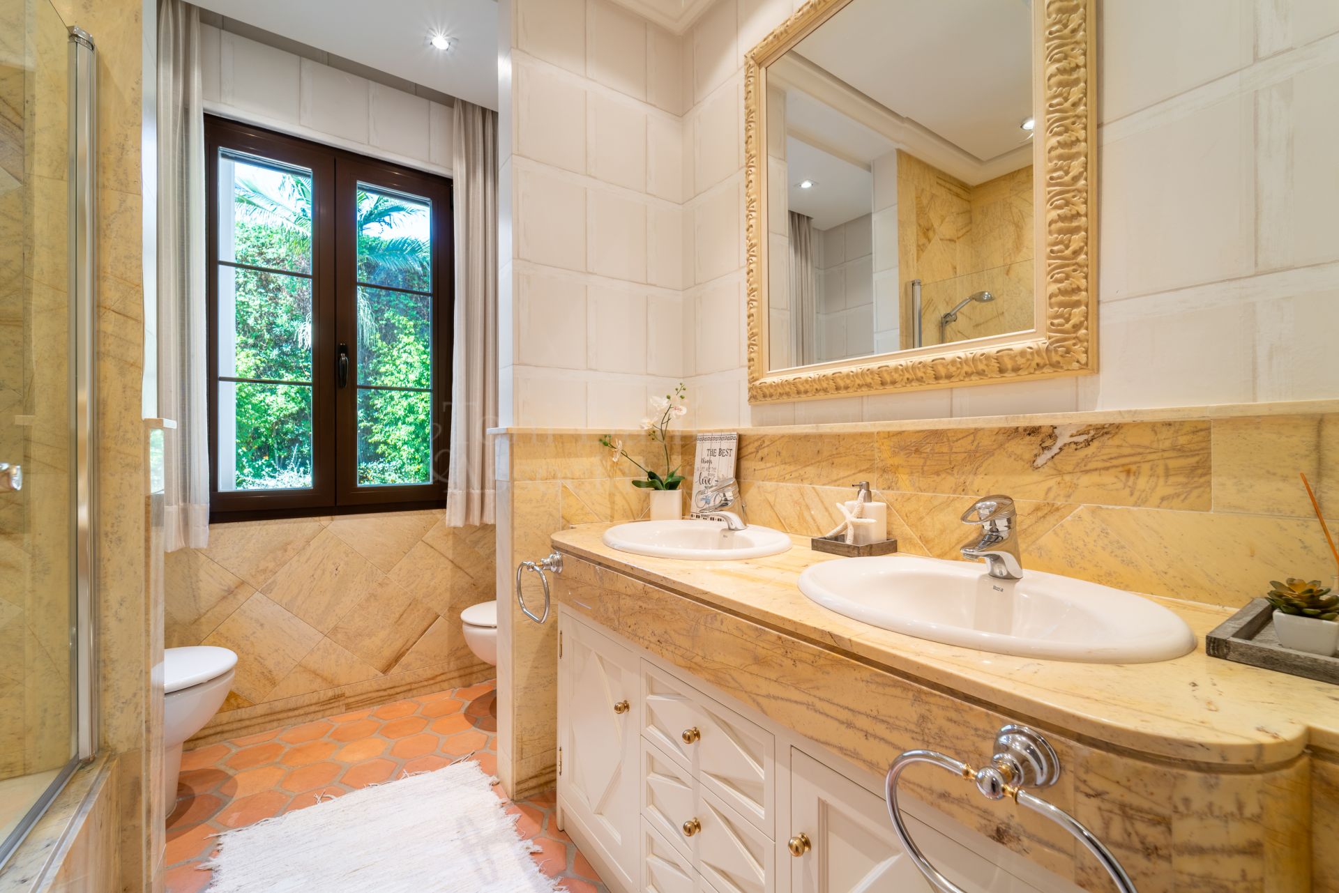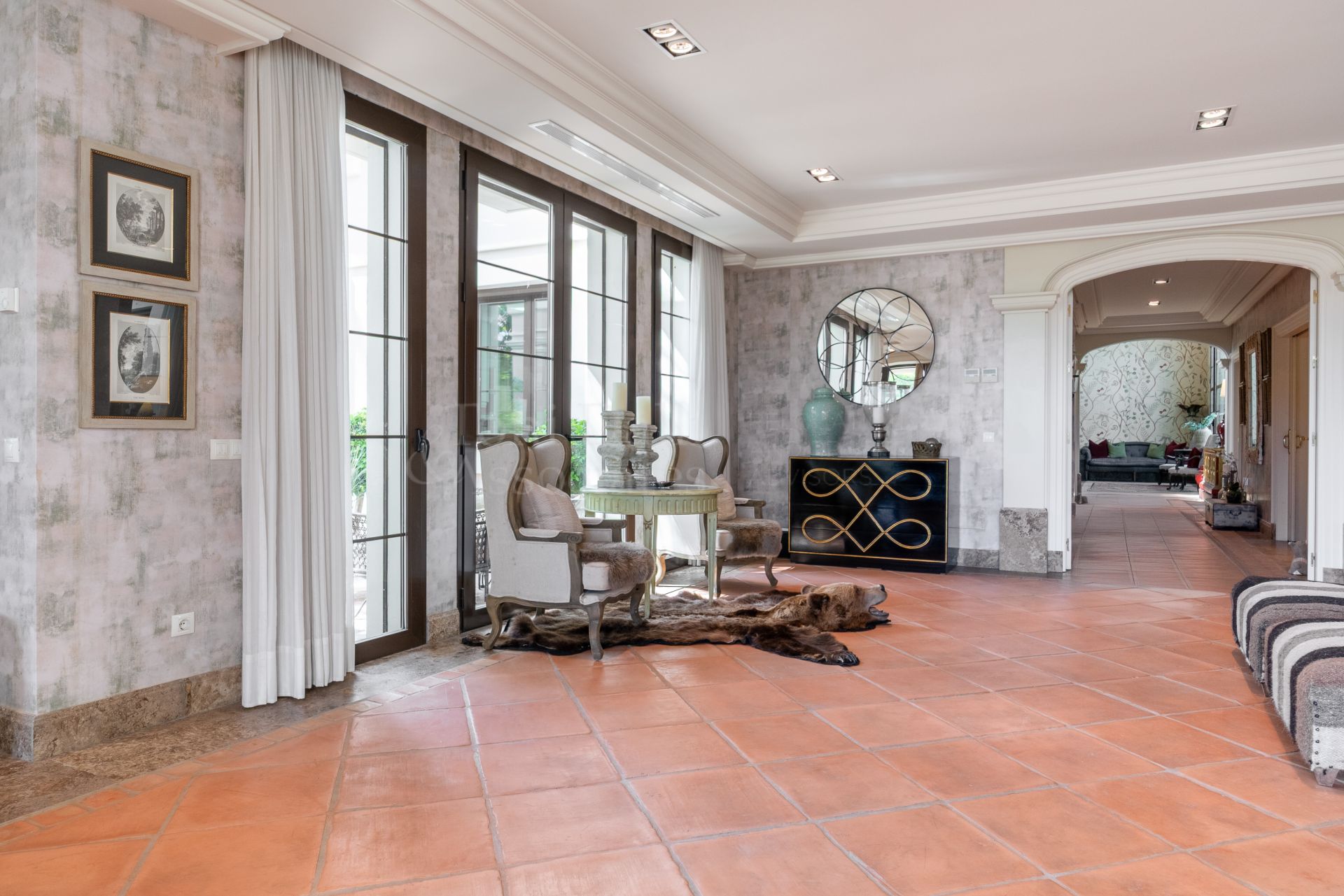 Located in the tranquil and exclusive area of Guadalmina Baja, just steps from the beach and accessed via a one-way street that ensures privacy and discretion, stands this imposing classic-style villa with timeless elegance and unique charm.