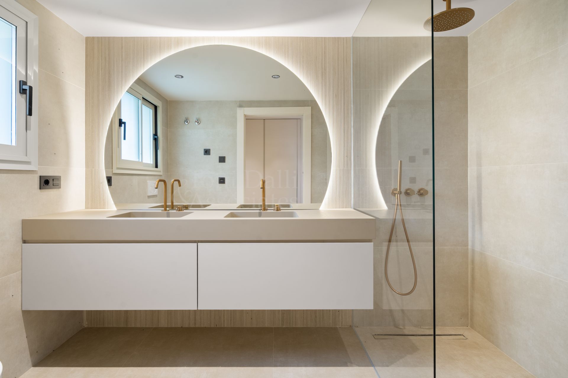 The master suite includes a luxurious en-suite bathroom and direct access to the terrace, creating a private retreat with relaxing views. Two additional bedrooms each feature their own bathrooms, providing comfort and privacy for family or guests. The layout of the apartment has been thoughtfully planned to maximize functionality and flow, making it ideal for modern living.