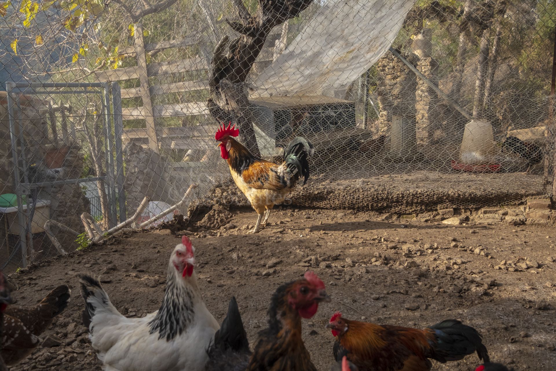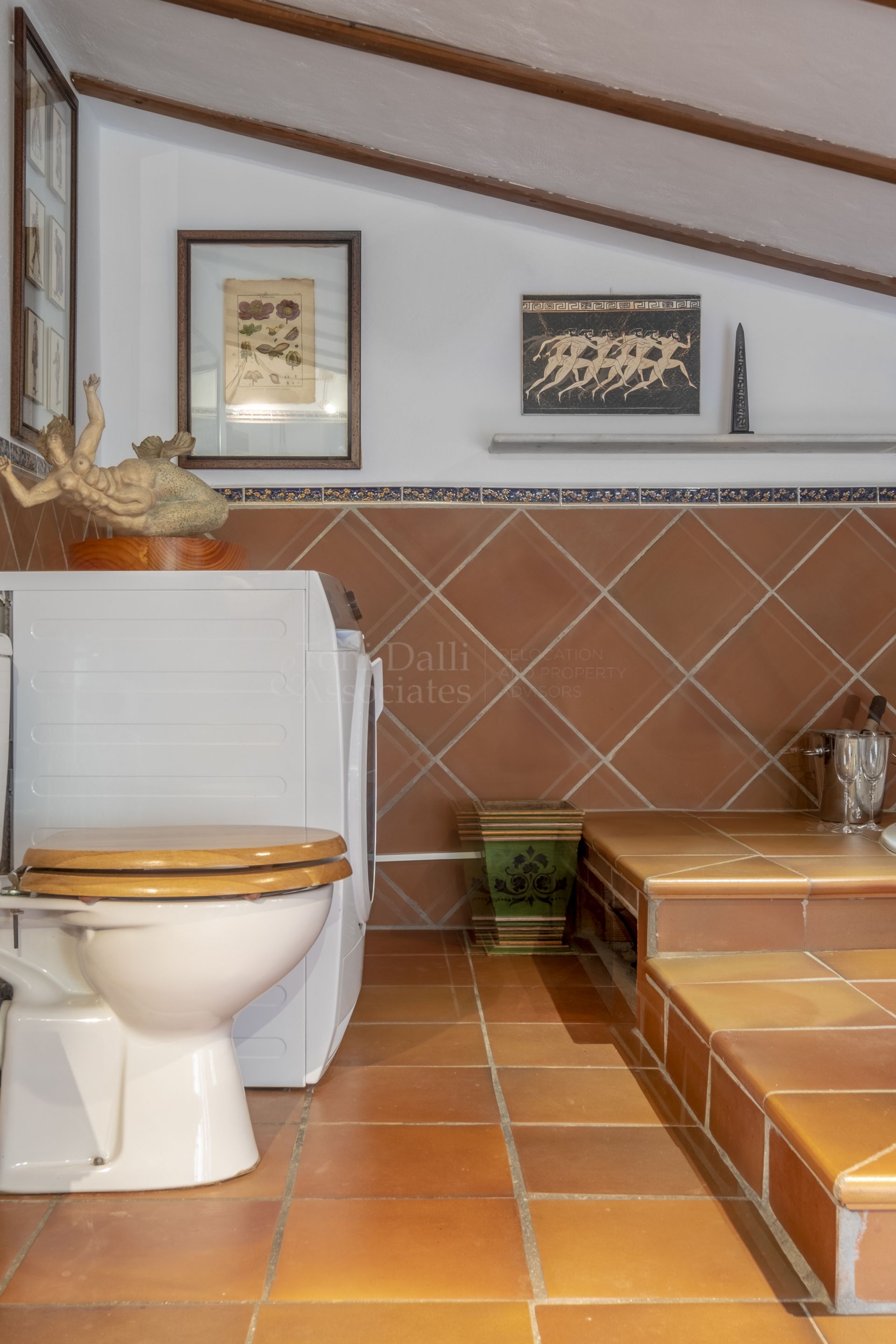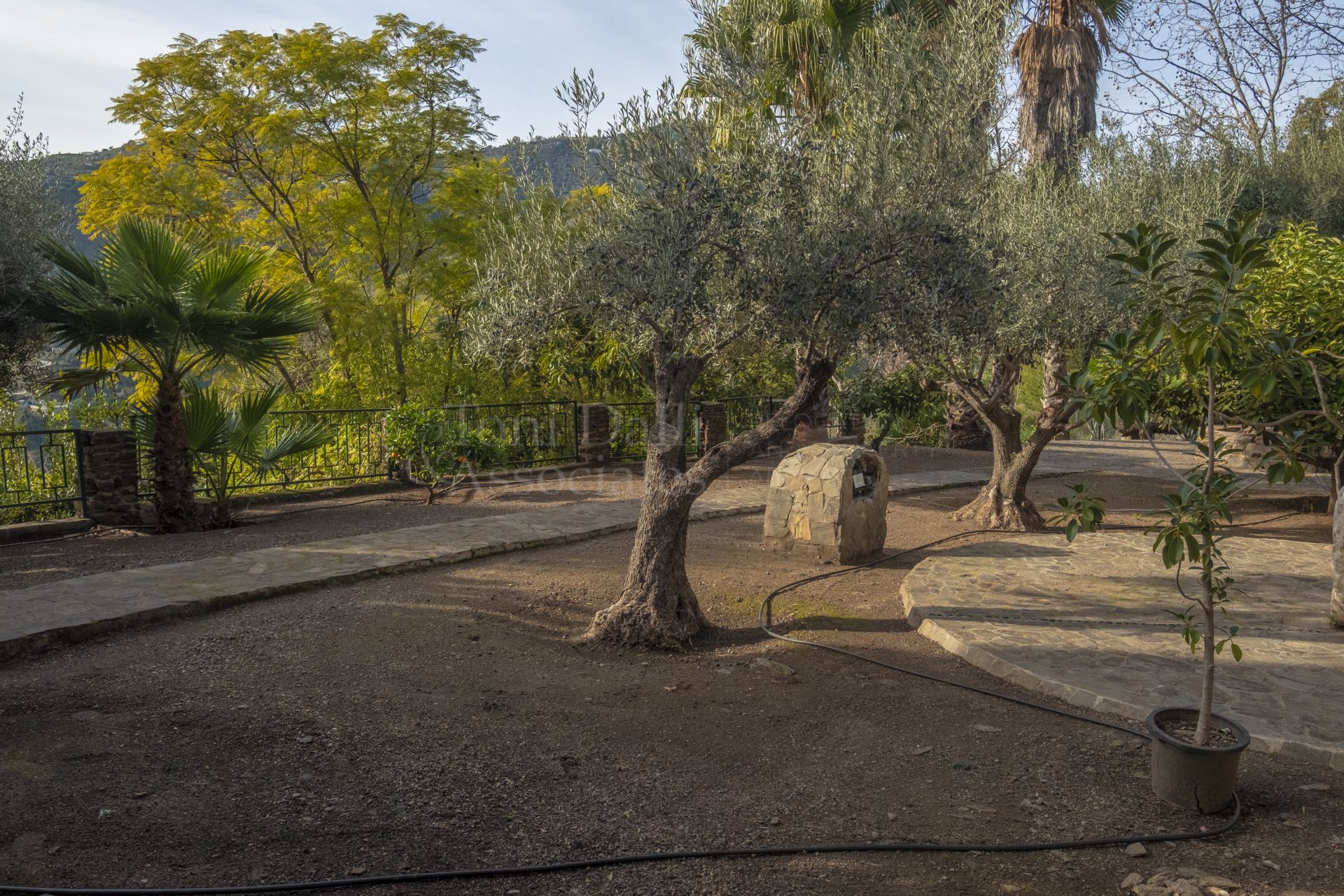 Outside, the estate features well-maintained gardens filled with a variety of plants, fruit trees, and palm trees, as well as a vegetable garden for those who enjoy cultivating their own produce. Two decorative fountains add to the peaceful rustic ambiance. The property also includes two storage rooms, a chicken coop, and a horse stable currently used as a workshop or studio. There is even a riding arena that can easily be adapted to extend the garden or create another leisure area.