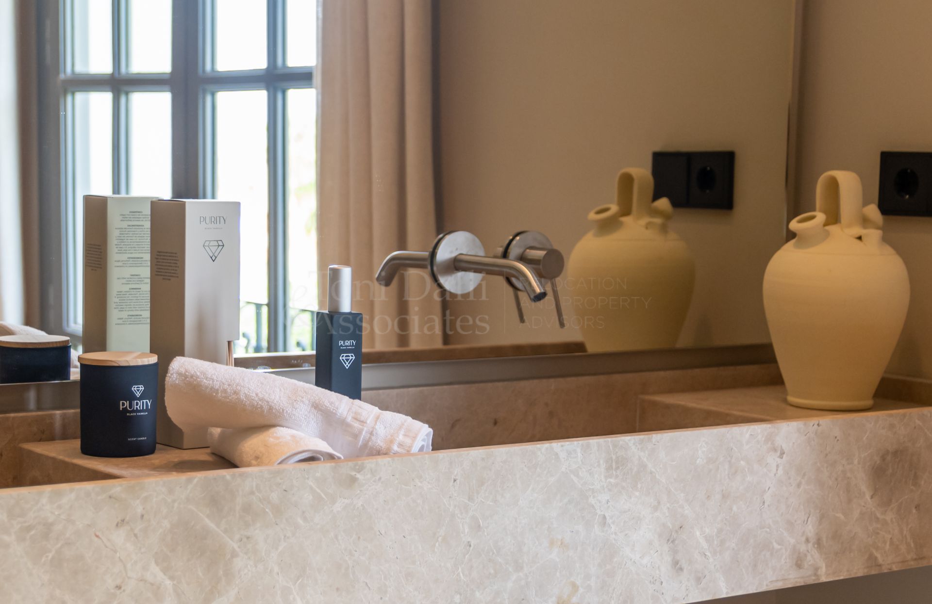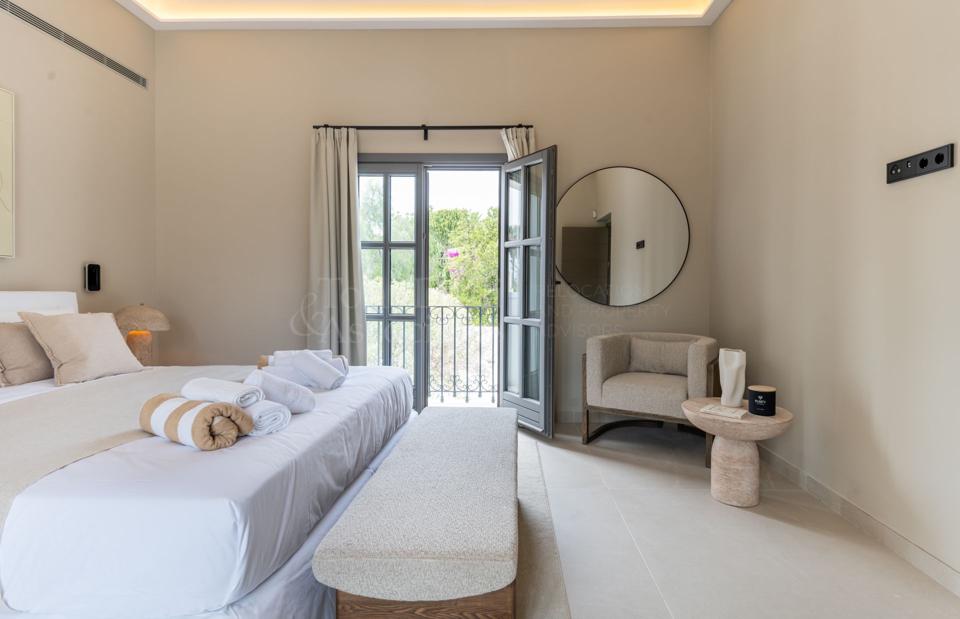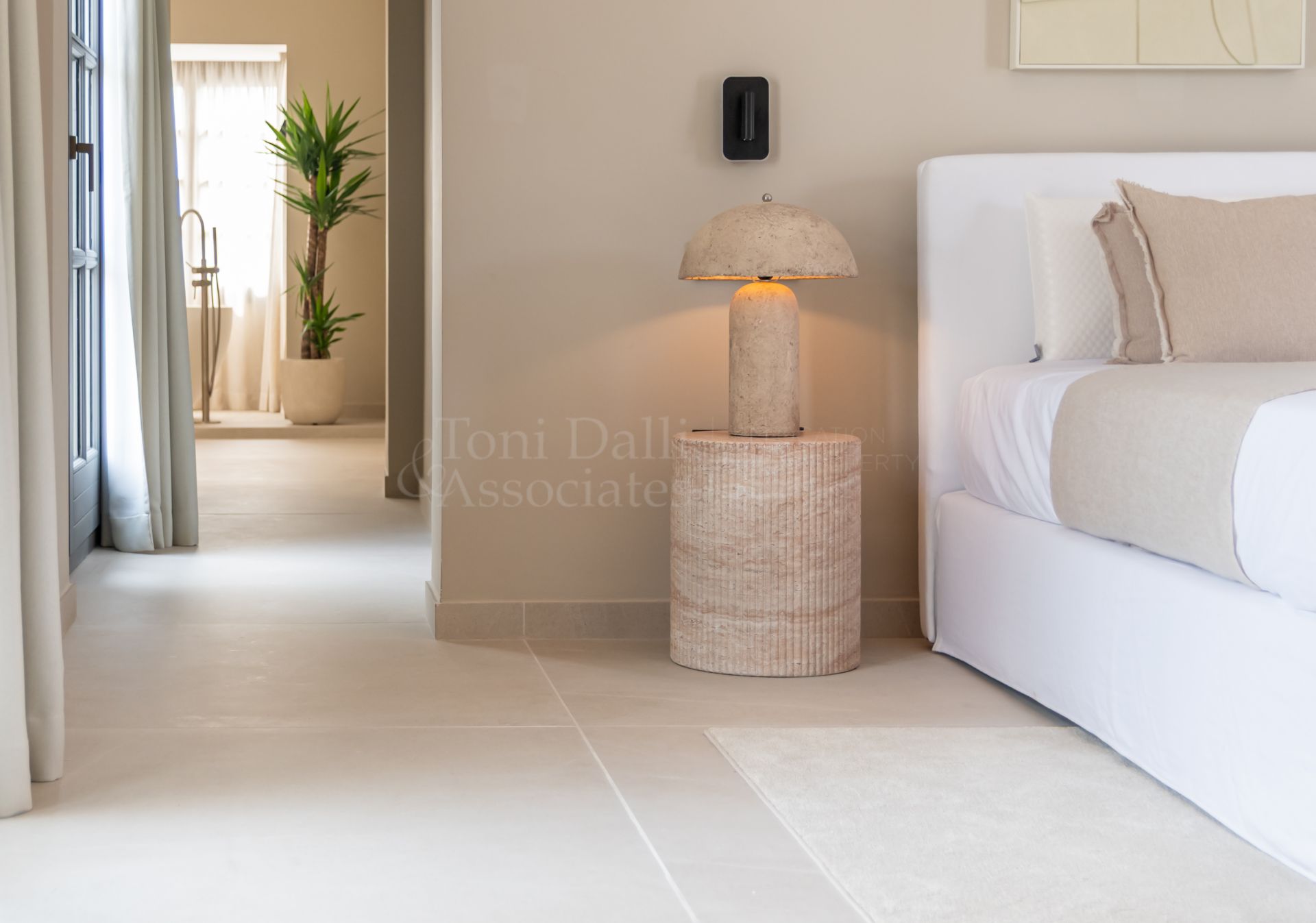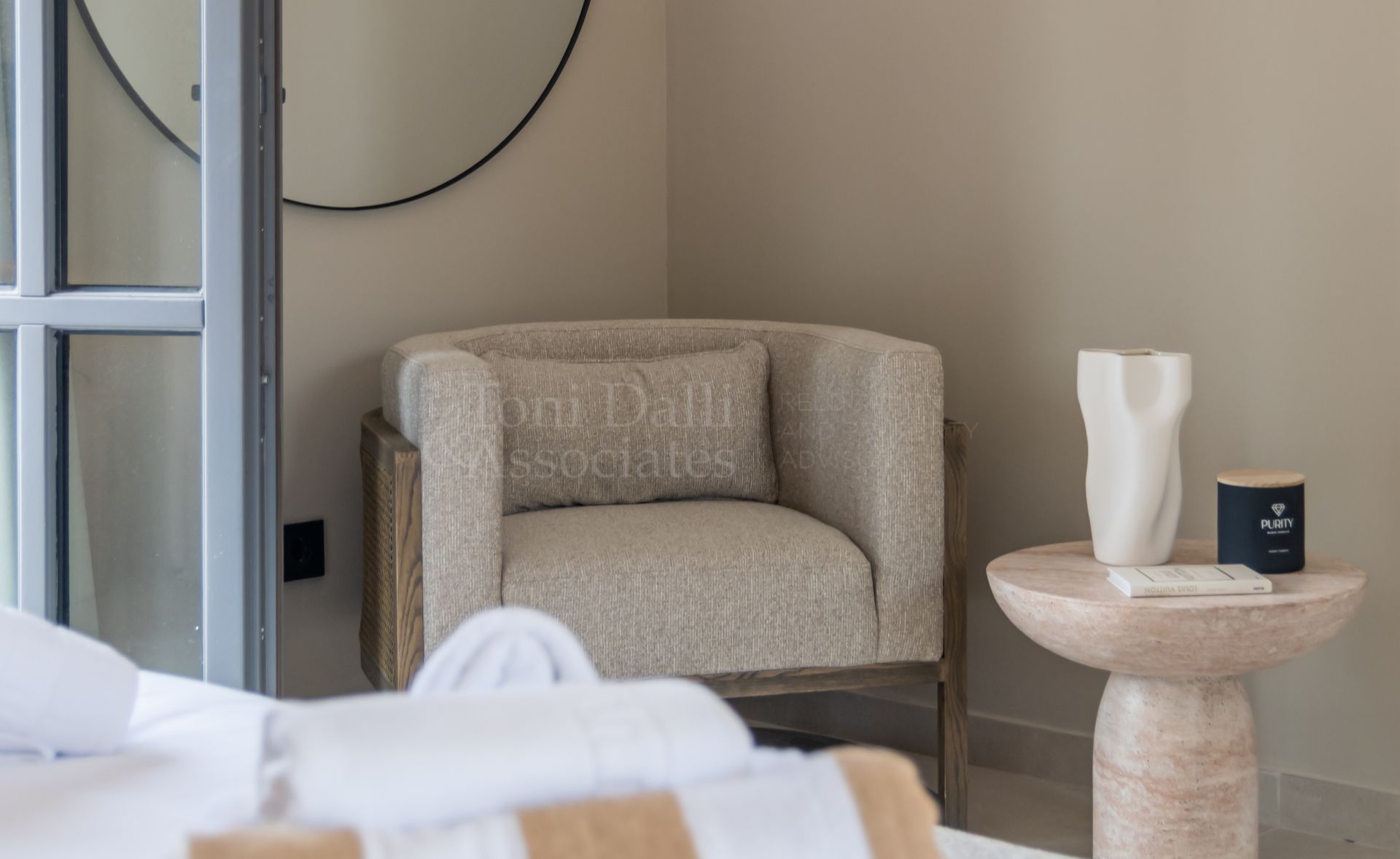 Villa Solana includes five bedrooms and six bathrooms, thoughtfully distributed to provide comfort and privacy for both family and guests. Two master suites stand out for their size and elegance, each with en-suite bathrooms designed with spa-like features and views over the garden and pool. The remaining bedrooms also enjoy abundant light and tasteful décor, offering versatility for use as guest rooms, offices, or children’s rooms.