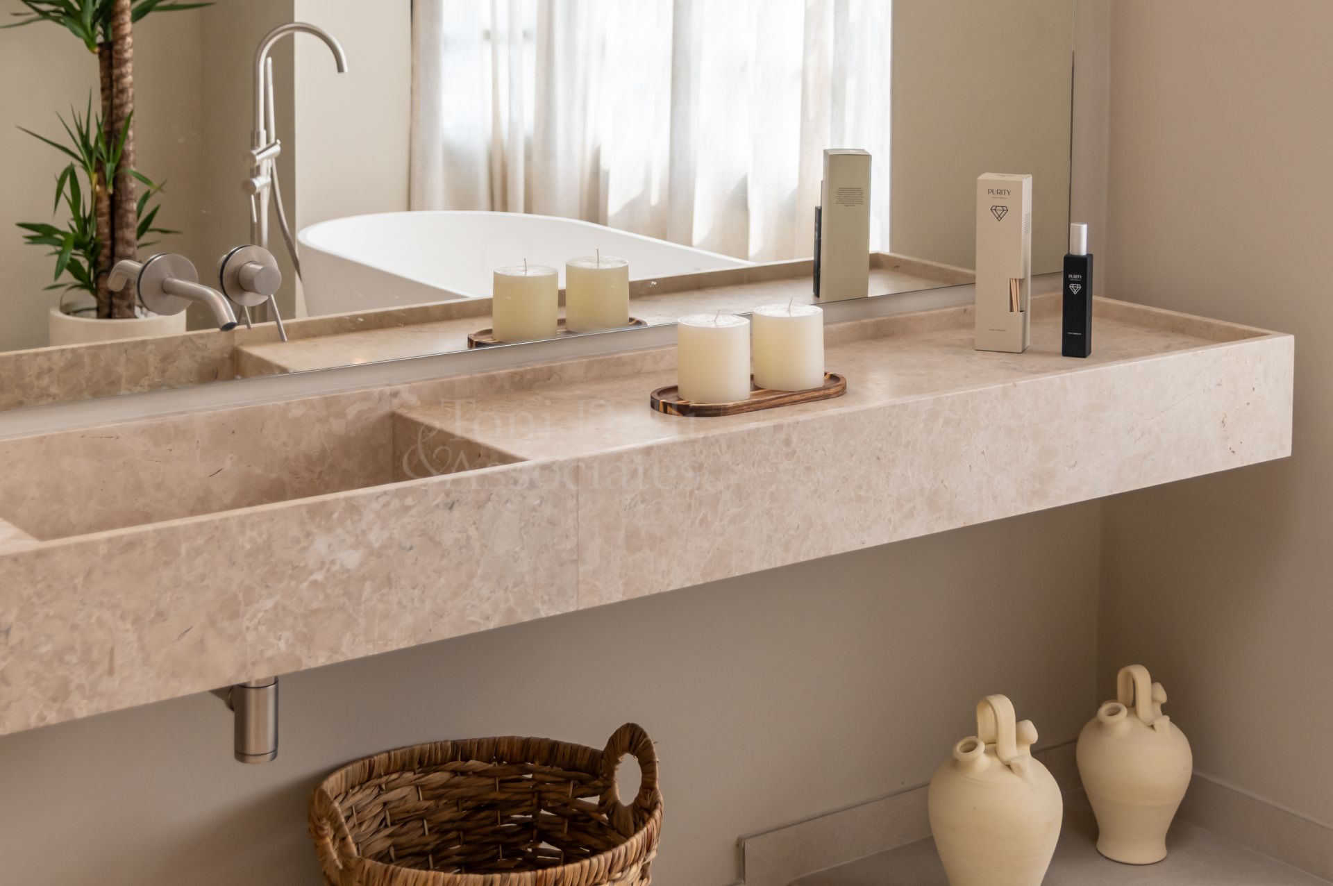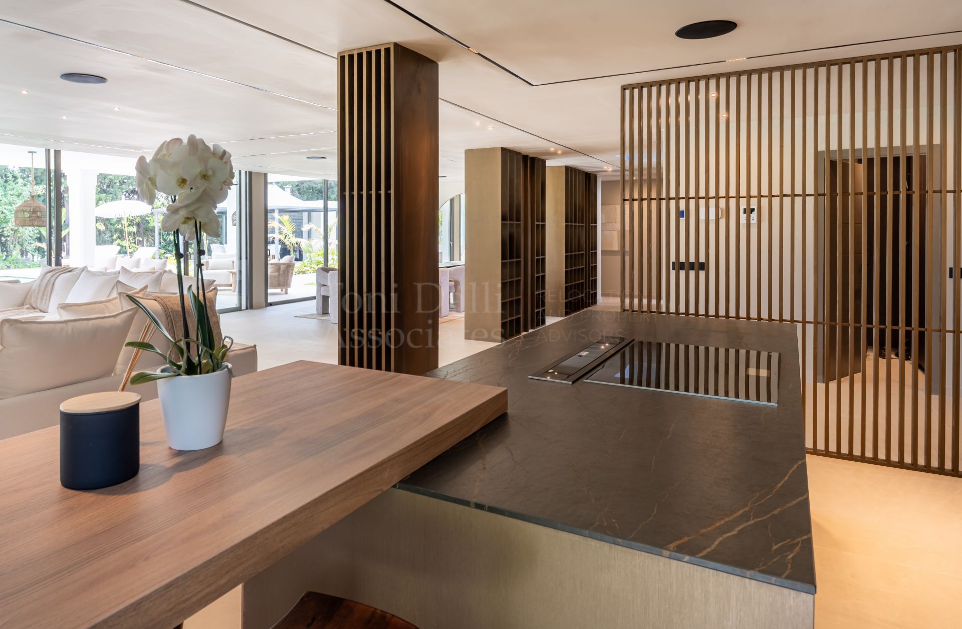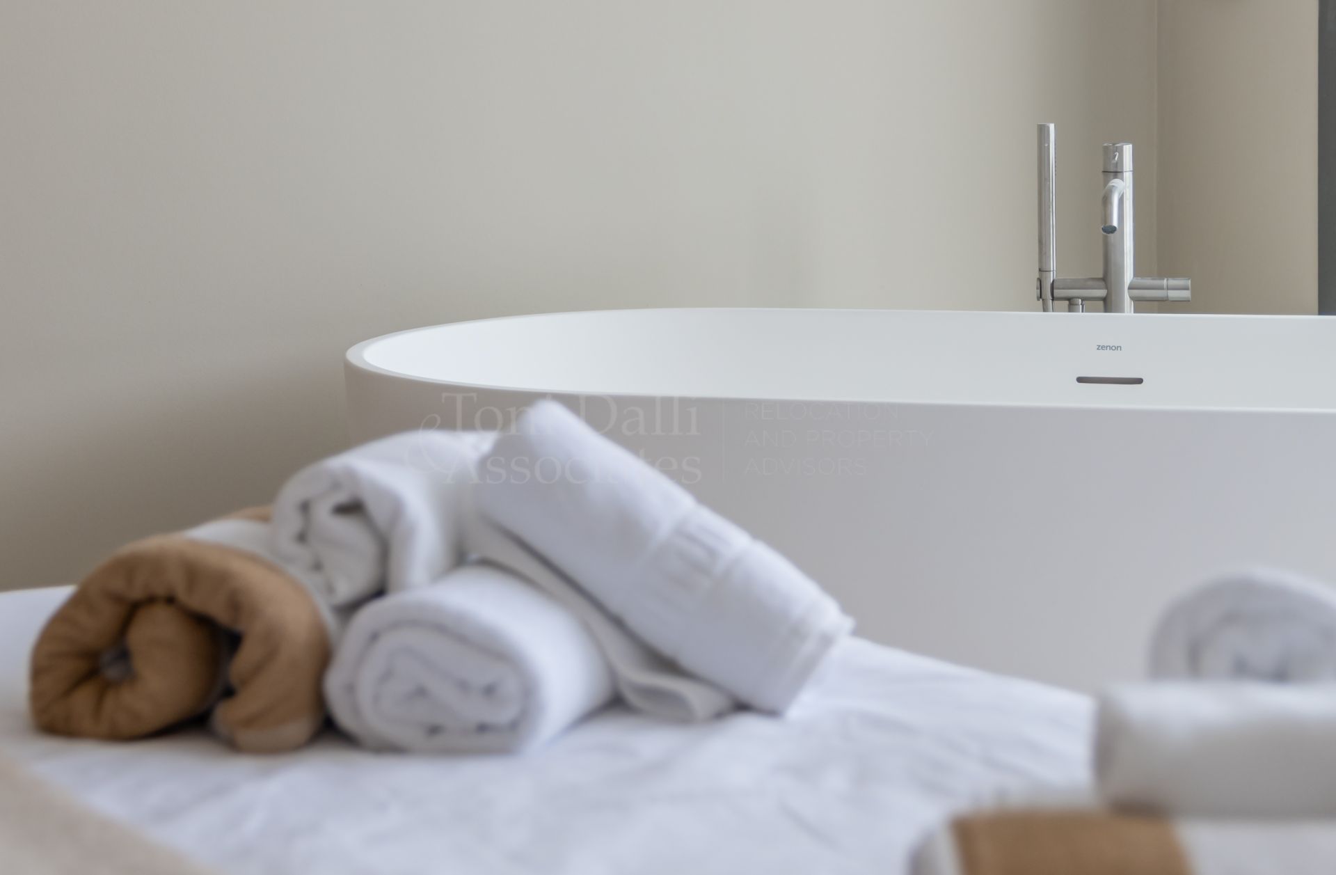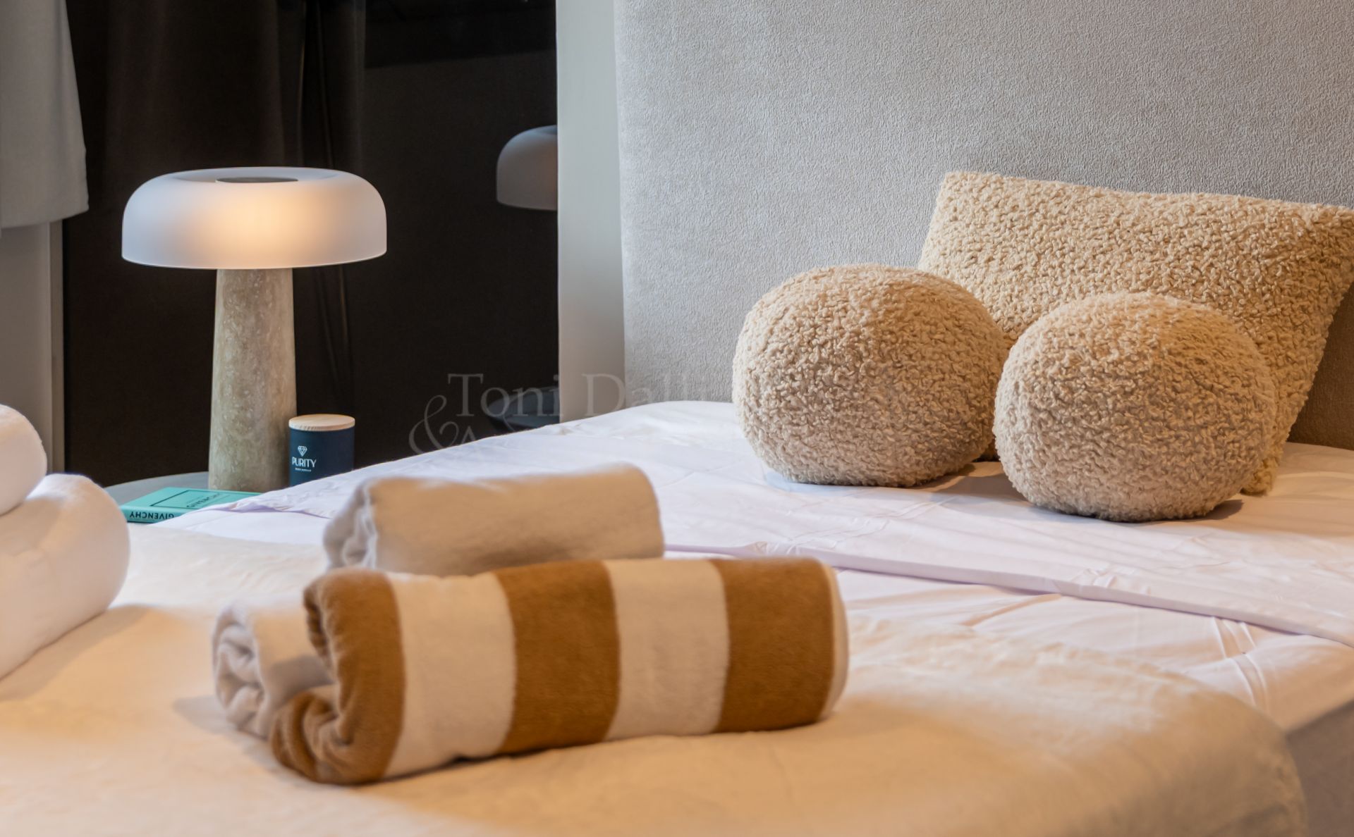 Villa Solana includes five bedrooms and six bathrooms, thoughtfully distributed to provide comfort and privacy for both family and guests. Two master suites stand out for their size and elegance, each with en-suite bathrooms designed with spa-like features and views over the garden and pool. The remaining bedrooms also enjoy abundant light and tasteful décor, offering versatility for use as guest rooms, offices, or children’s rooms.