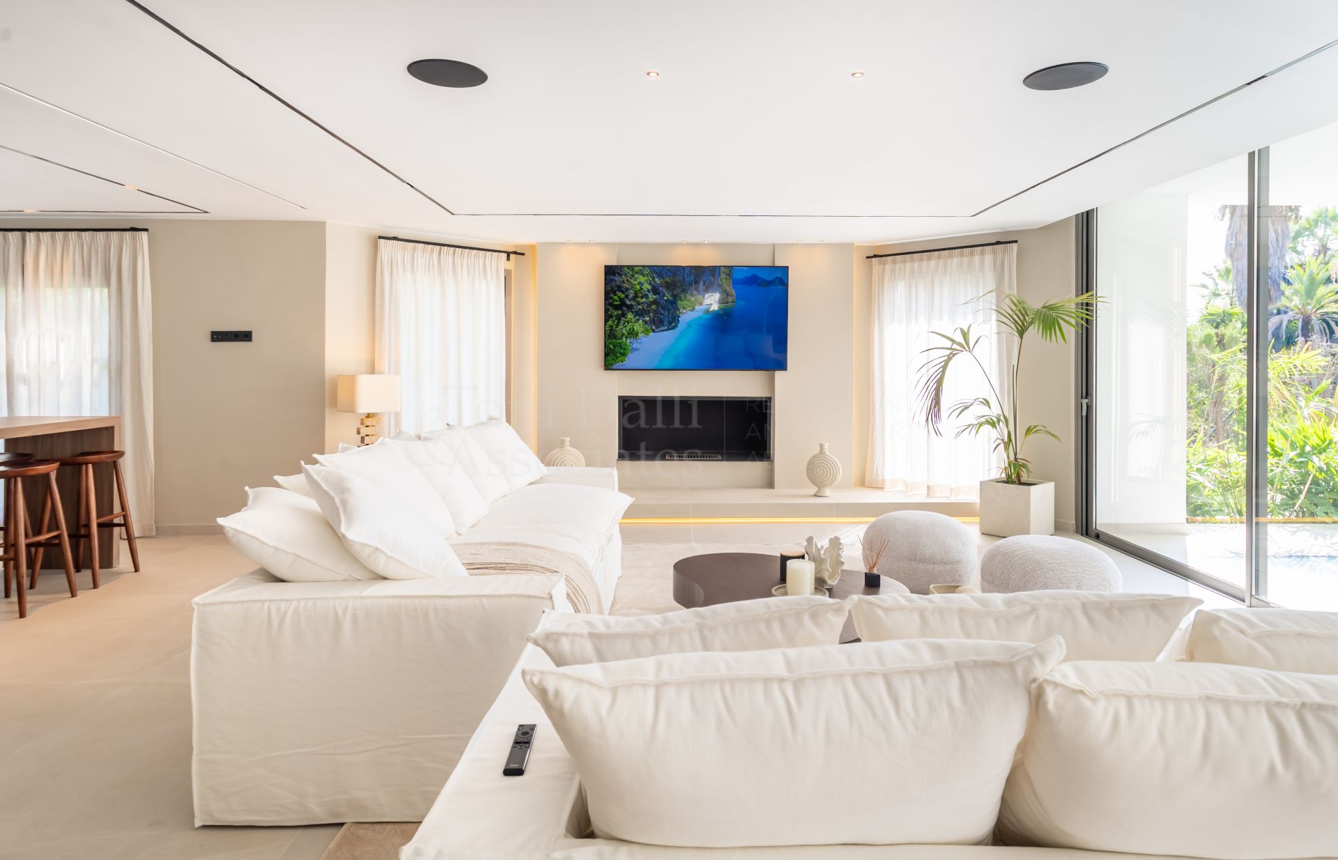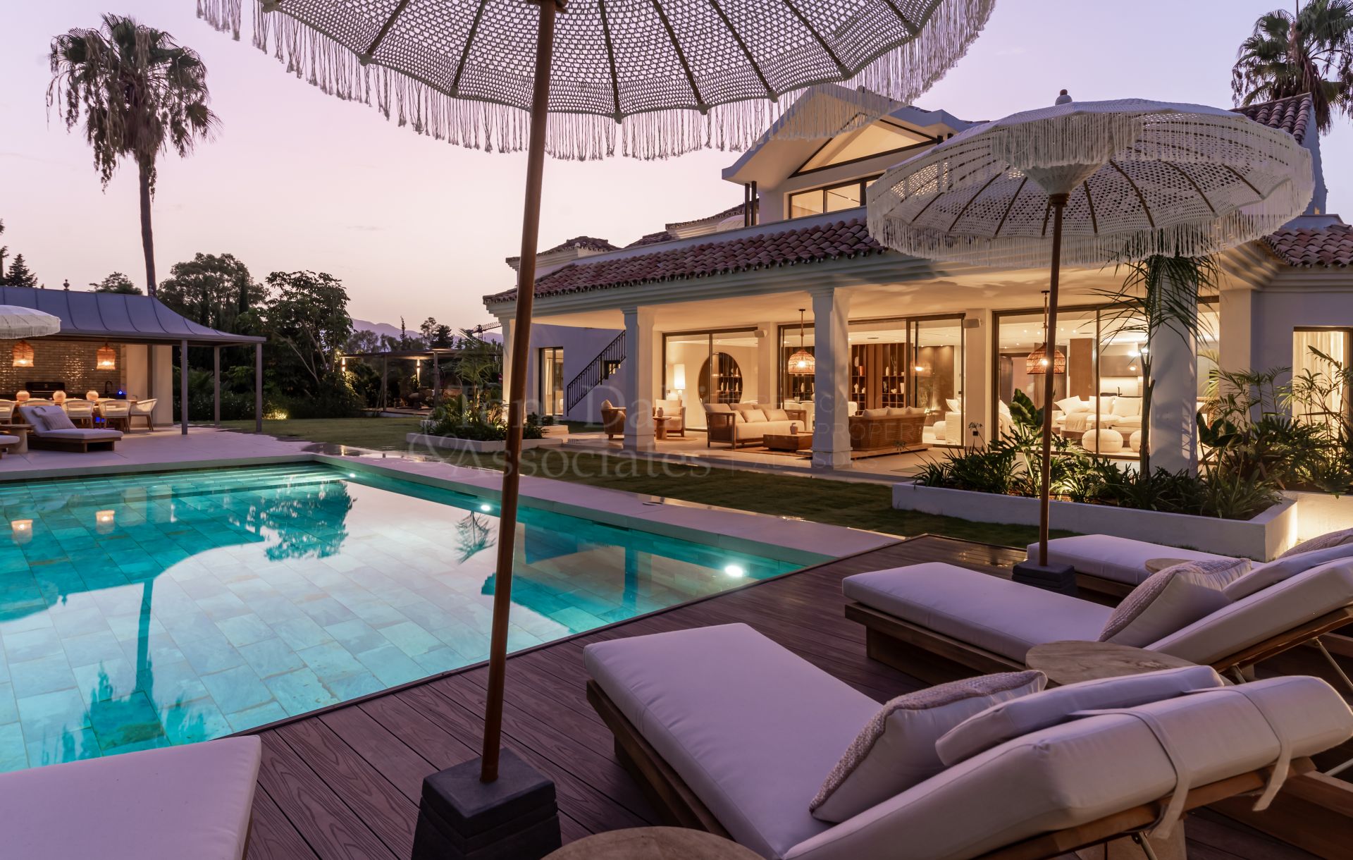 Villa Solana is a beautifully refurbished Andalusian-style villa that perfectly combines traditional charm with contemporary comfort. Set on a private 1,843 m² plot, this elegant home is surrounded by lush gardens with mature trees and a sparkling swimming pool at its centre, creating a peaceful retreat ideal for outdoor living.