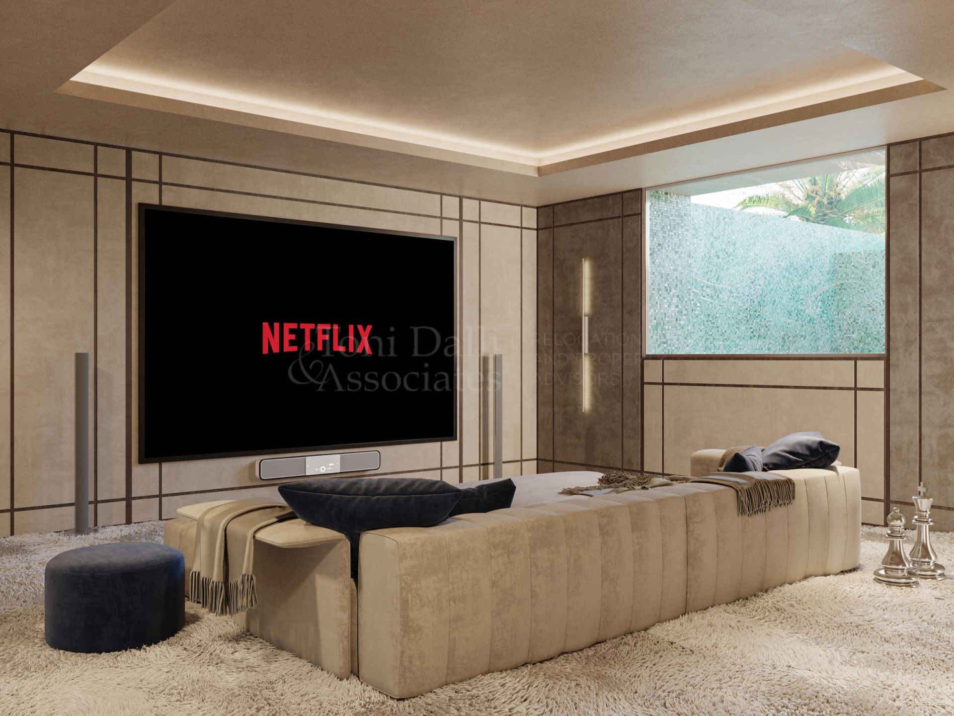 A fully equipped gym, a luxury spa featuring a sauna and Hammam, a stylish bar, and a games room ensure that relaxation and recreation are always within reach. An elevator connects every level of the home, combining practicality with sophistication. Throughout the property, the architectural design harmonizes beautifully with the surrounding landscape. Natural materials, clean lines, and a warm, minimalist aesthetic create a living environment that is both distinctive and timeless. The design prioritizes comfort and flow, making every space feel both functional and inviting.