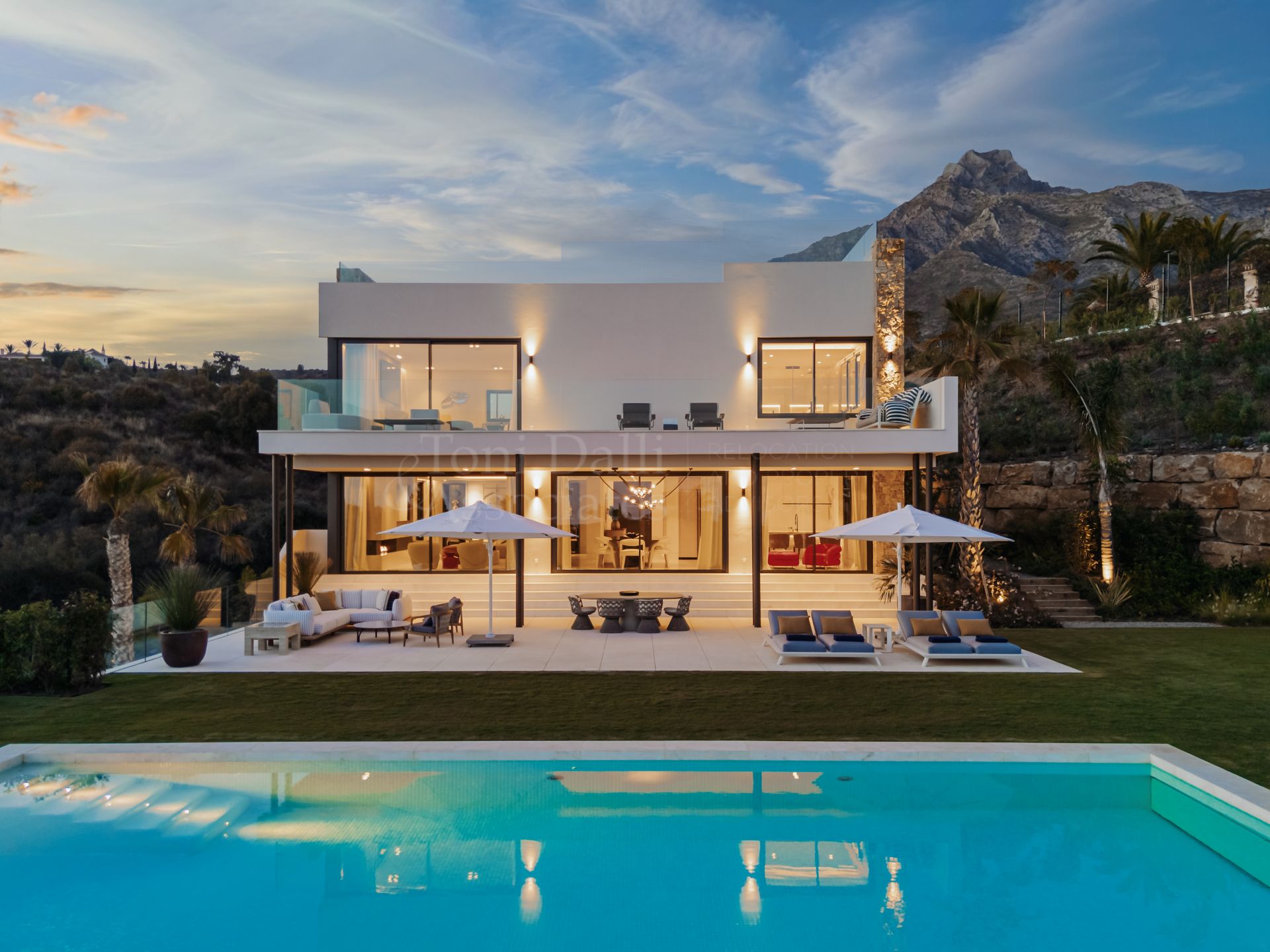 Set within the prestigious Marbella Hill Club on the Golden Mile, Villa Horizon is a newly built contemporary villa that combines modern style with a warm, natural feel. Designed to offer an exceptional everyday lifestyle, it is a home where luxury and comfort meet in every room. The interiors have been created by renowned designer Pedro Peña, giving the property a distinctive character that feels elegant, calm, and welcoming from the moment you walk in.