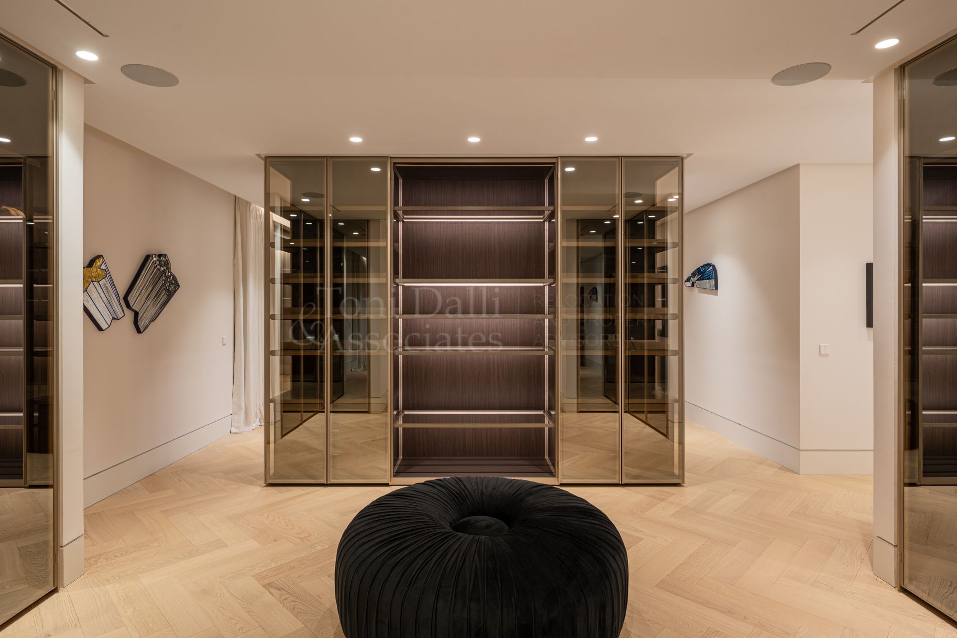 The villa follows a soft, neutral colour scheme with plenty of wood, natural stone, and marble. These materials give the house a relaxed, high-quality atmosphere that is both stylish and easy to live in. Every detail has been carefully chosen, from the built-in carpentry to the lighting and decorative pieces, so that each space feels coherent and beautifully finished.