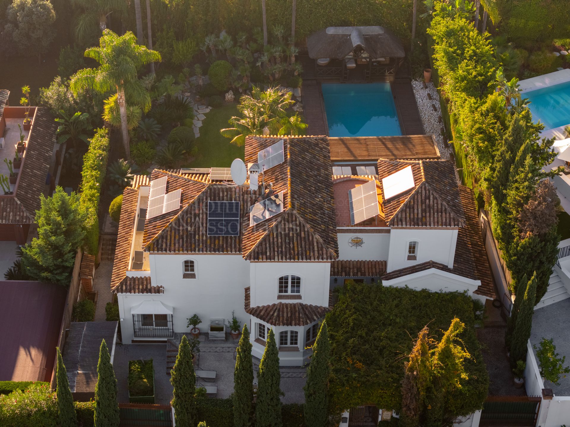 Located in the prestigious Aloha area, in the heart of the Golf Valley of Nueva Andalucía, this elegant villa perfectly blends the romantic charm of French Provençal architecture with contemporary sophistication. Situated in one of Marbella’s most exclusive residential areas, this distinguished property offers an exceptional combination of refined living, privacy, and a highly convenient location.
