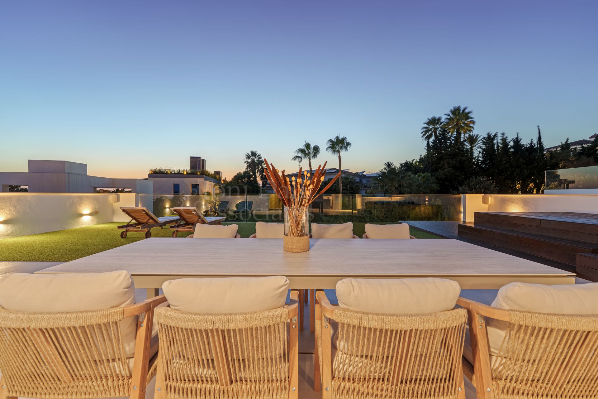 Villa Jardin is a contemporary villa for sale in Nueva Andalucía, offering modern living just a few minutes from Puerto Banús and the beach. It is a stylish and comfortable home designed for both everyday life and holidays, with bright interiors, generous outdoor spaces and a very convenient location close to golf, restaurants and shops. This is an excellent option for anyone looking for an easy-to-maintain, ready-to-enjoy property in one of Marbella’s most popular residential areas.