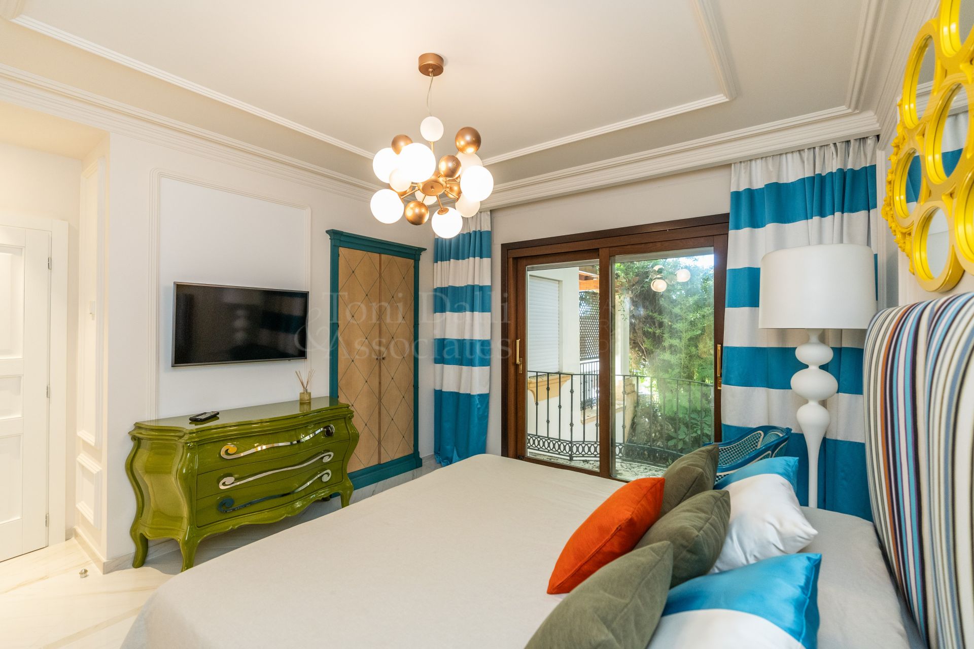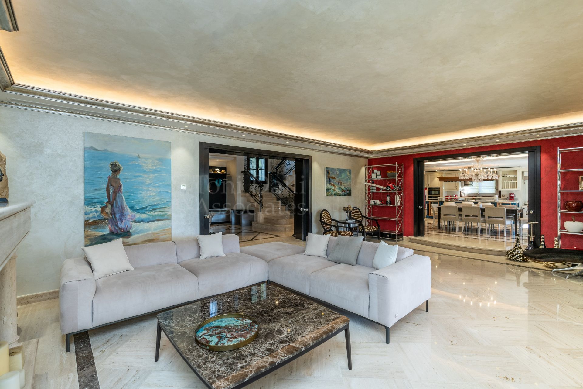 Currently presented in excellent condition yet offering scope for light refurbishment to align with personal vision, this residence represents a rare opportunity to acquire exceptional value within one of Marbella’s most exclusive gated communities—where security, privacy and prestige define daily life. The property’s position delivers unparalleled convenience: minutes from the legendary Golden Mile, designer boutiques, Michelin-starred dining and the glamorous marina of Puerto Banús, yet cocooned in tranquility and mature landscaping that ensures complete seclusion. This is more than a villa—this is a lifestyle defined by sophistication, a home where classical Mediterranean architecture, generous proportions and captivating sea views combine to create an atmosphere of enduring elegance that will resonate across generations.
