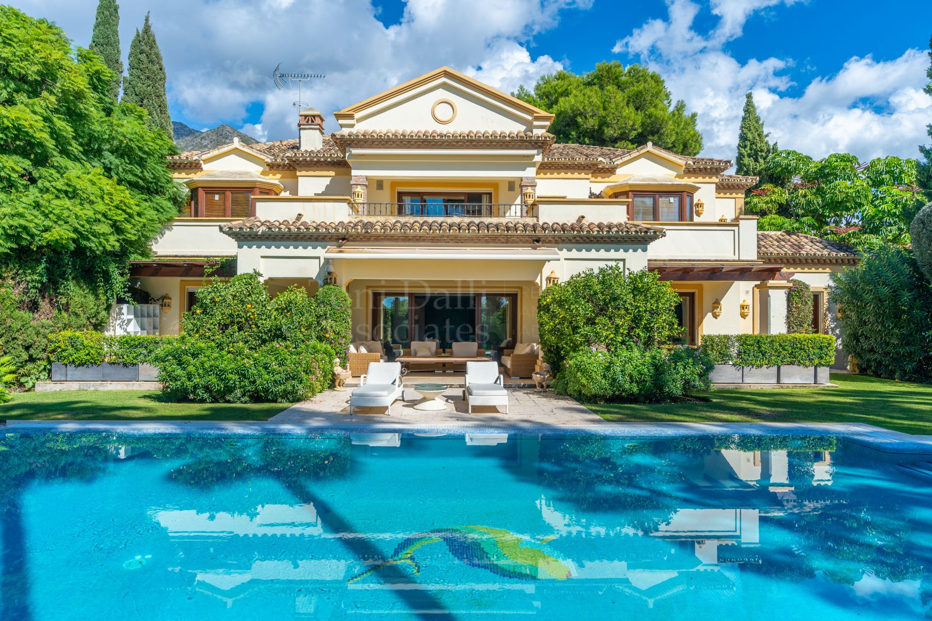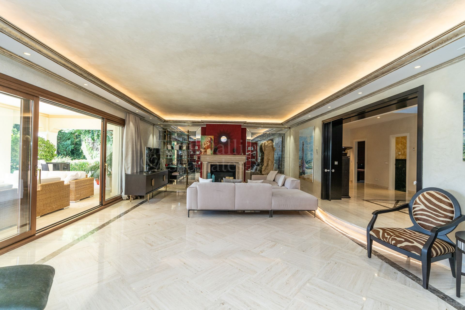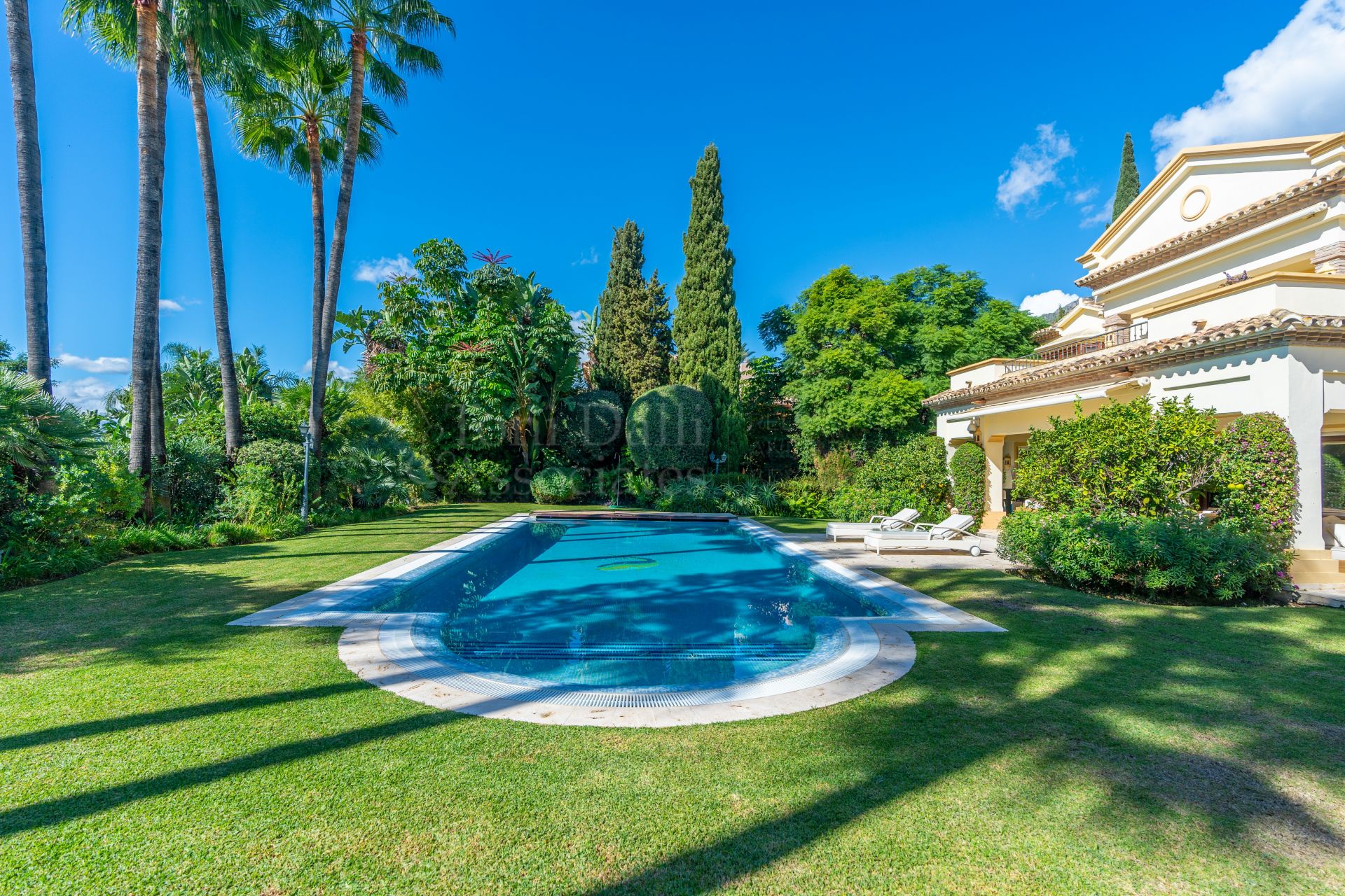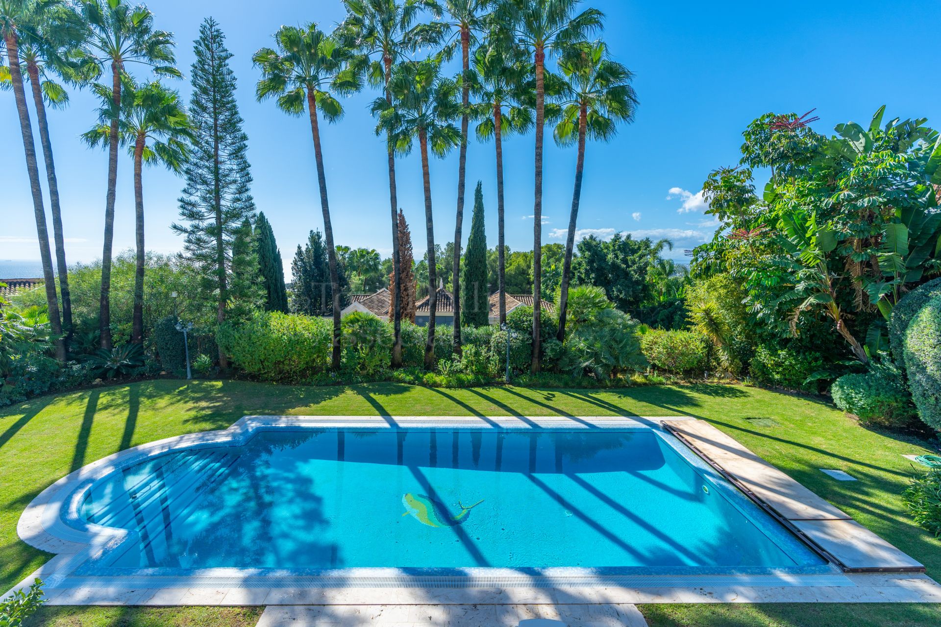 Delivering what discerning buyers seek in Marbella’s most coveted address: a magnificent seven-bedroom Mediterranean villa commanding nearly 2,000 square meters of private, garden-wrapped grounds along one of Sierra Blanca’s most prestigious roads—where sweeping sea views, complete privacy and timeless architectural sophistication converge to create an extraordinary family sanctuary. This 985-square-meter residence embodies the pinnacle of refined Andalusian living, where classical design principles meet contemporary comfort through graceful archways, soaring ceilings and expansive light-filled interiors that dissolve the boundaries between indoor elegance and Mediterranean landscape.
