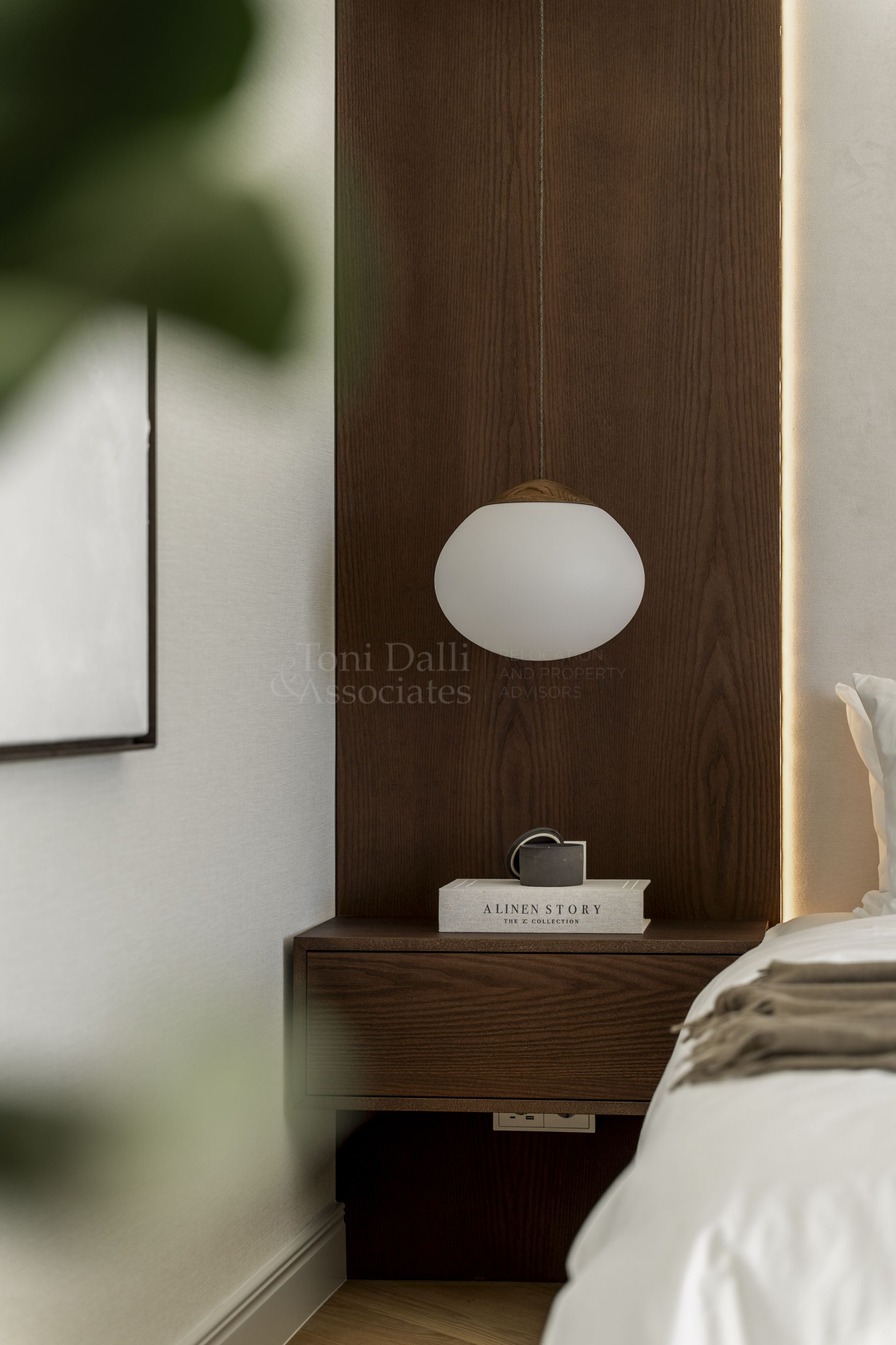 Inside, the villa features a carefully selected palette of high-quality materials. Chevron wooden flooring runs through the main living areas, bringing warmth and character to the interior. The Danespan kitchen is both stylish and practical, with clean lines, ample storage and modern appliances that make cooking and hosting easy and enjoyable. The open-plan layout allows the kitchen, dining and living areas to flow naturally, creating a bright and welcoming heart of the home.